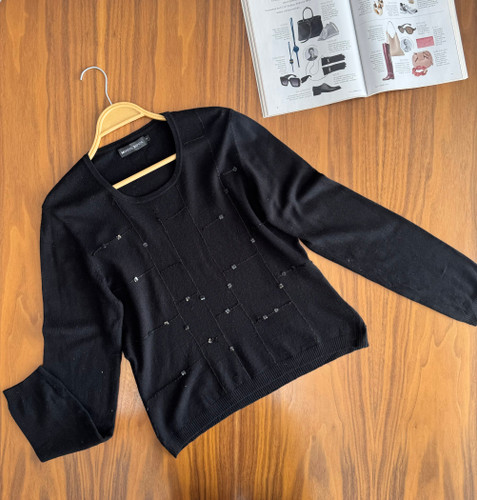 بافت مشکی پولک دوزی شده نرم و لطیف برندmarisol zapata