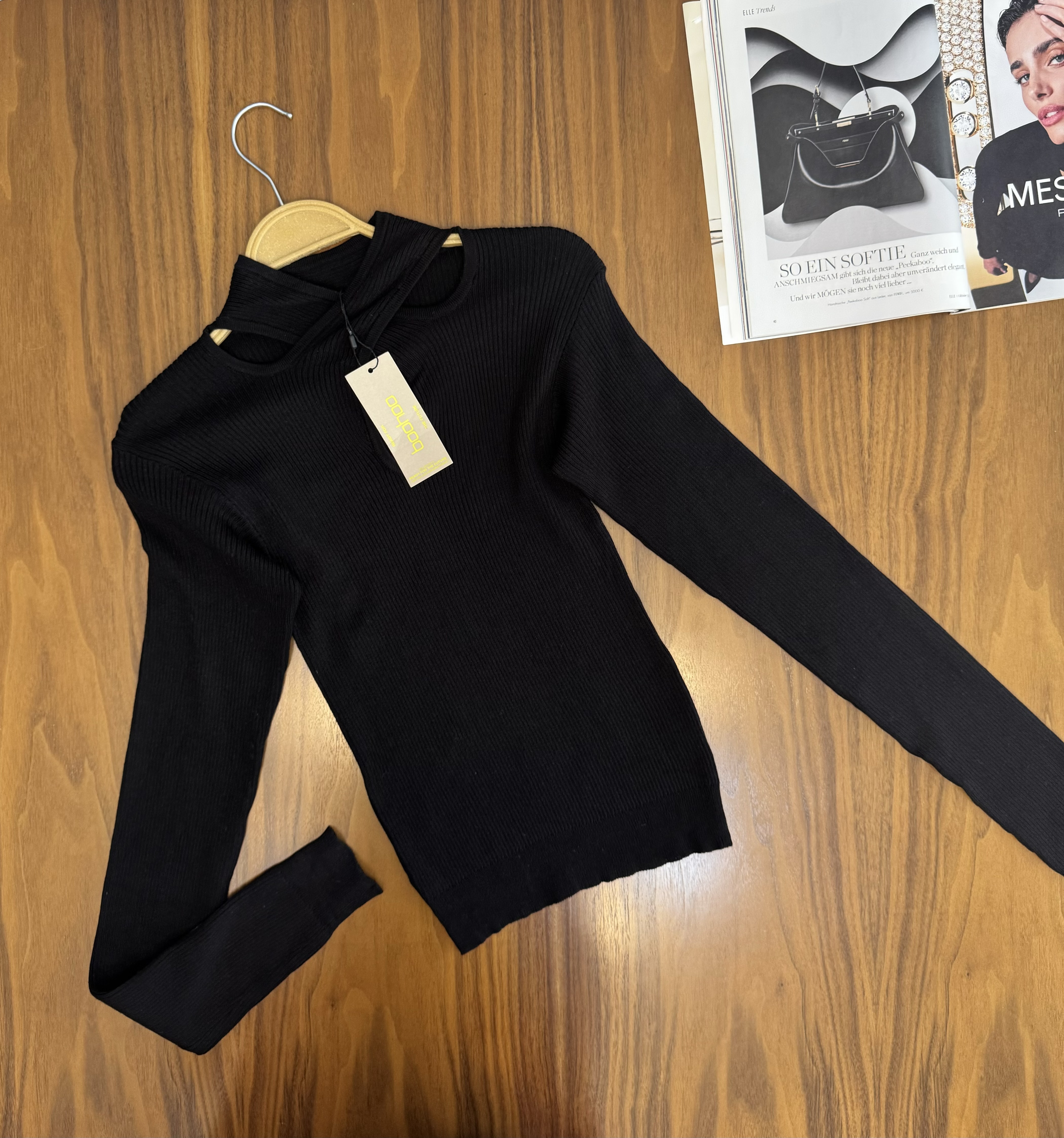 بافت تمام مشکی با یقه خیلی ناز و شیک تگدار برند Boohoo