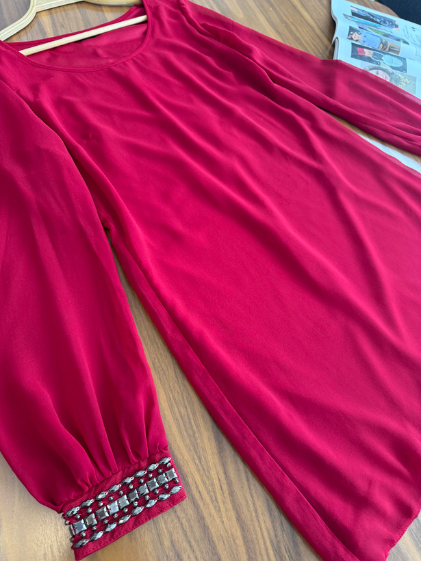 پیراهن خیلی خوشرنگ و خوشگل حریر تمام استردار-سراستینا سنگدوزی شده برند انگلیسیf&f