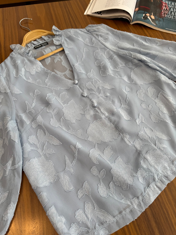 بلوز بینظیر و خوشرنگ آستردار جنس حریر برجسته وارداتی برندshein