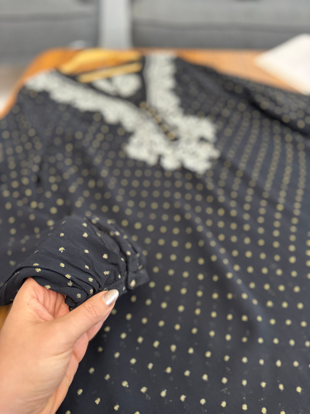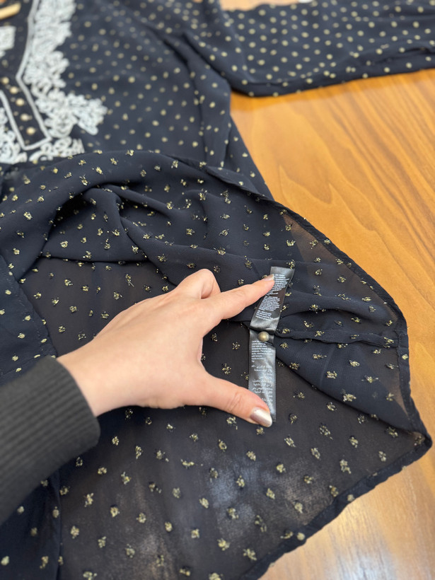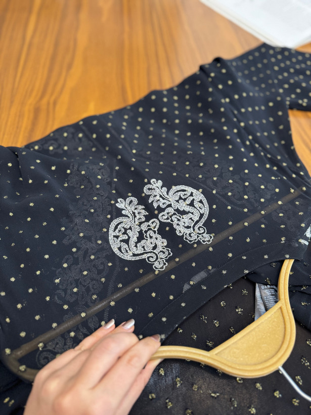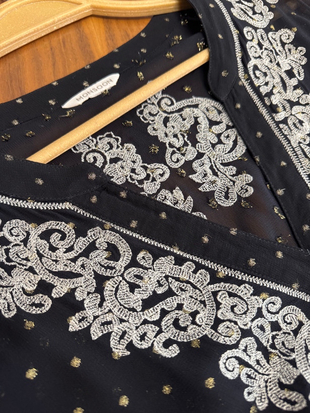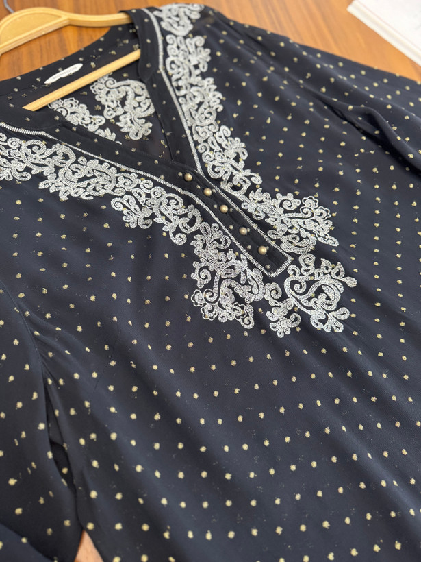 بلوز حریر نخ مشکی سرمه دوزی و طلا دوزی شده خیلیی خاص و ناز برند امریکاییmonsoon