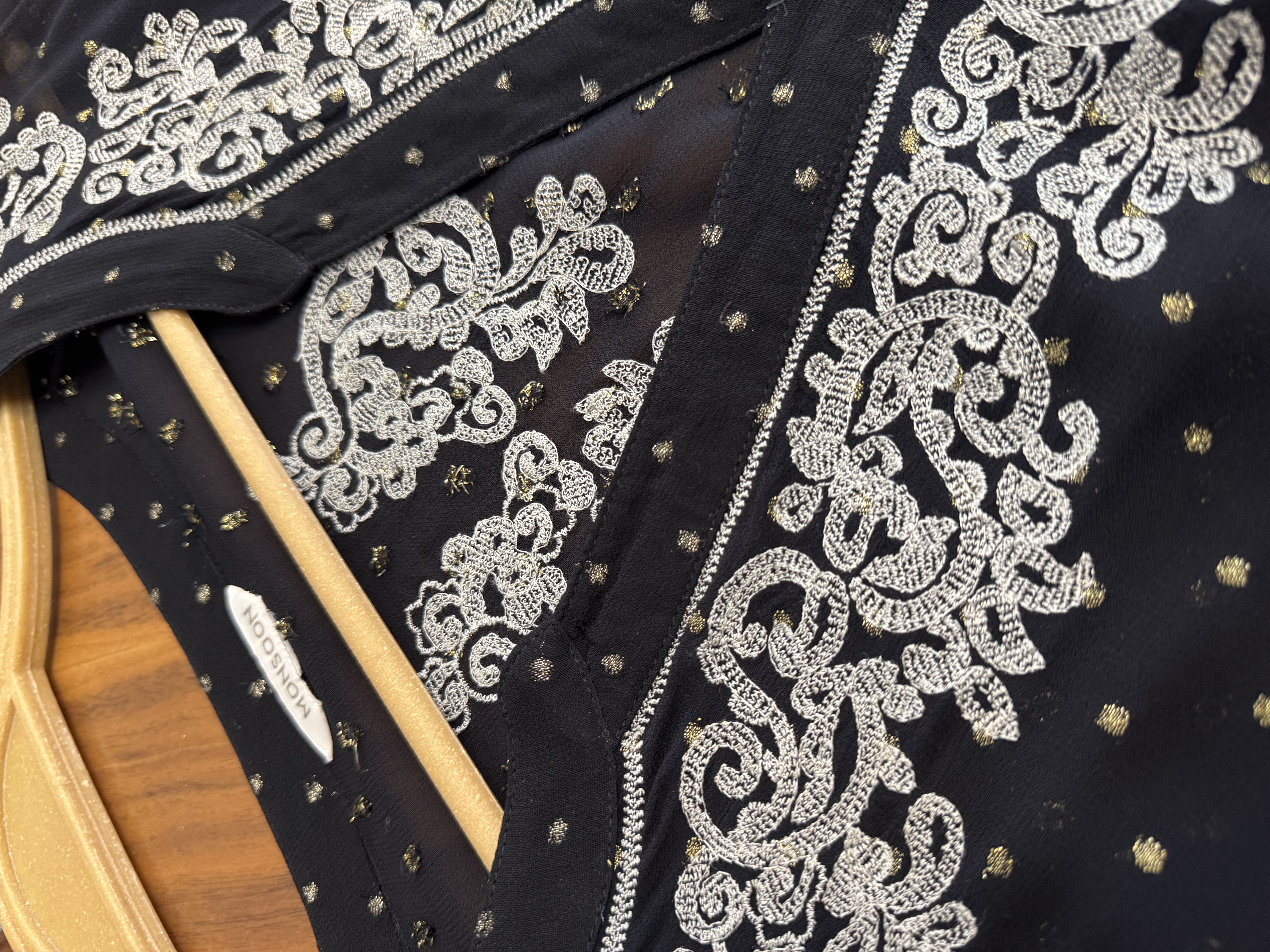 بلوز حریر نخ مشکی سرمه دوزی و طلا دوزی شده خیلیی خاص و ناز برند امریکاییmonsoon