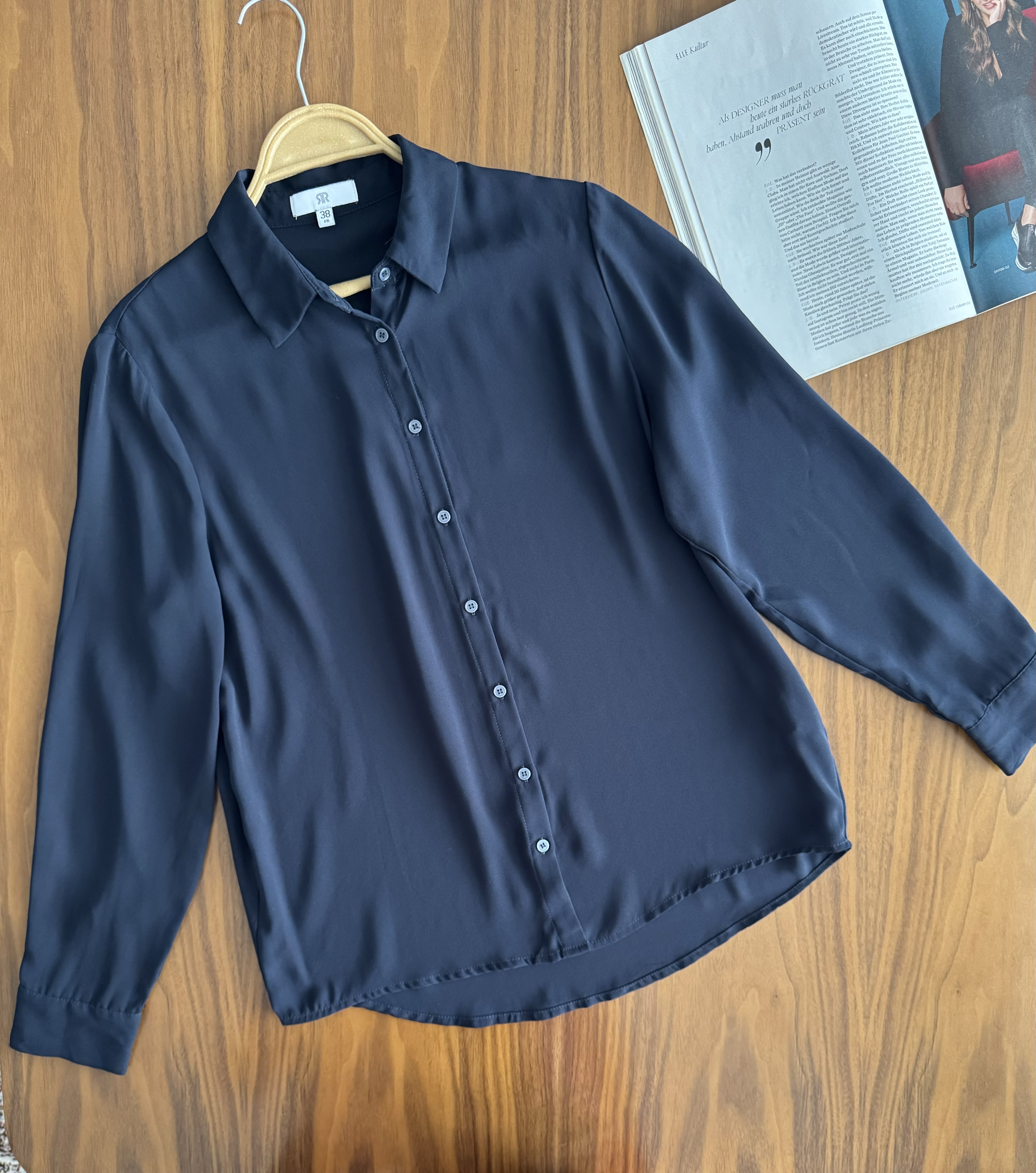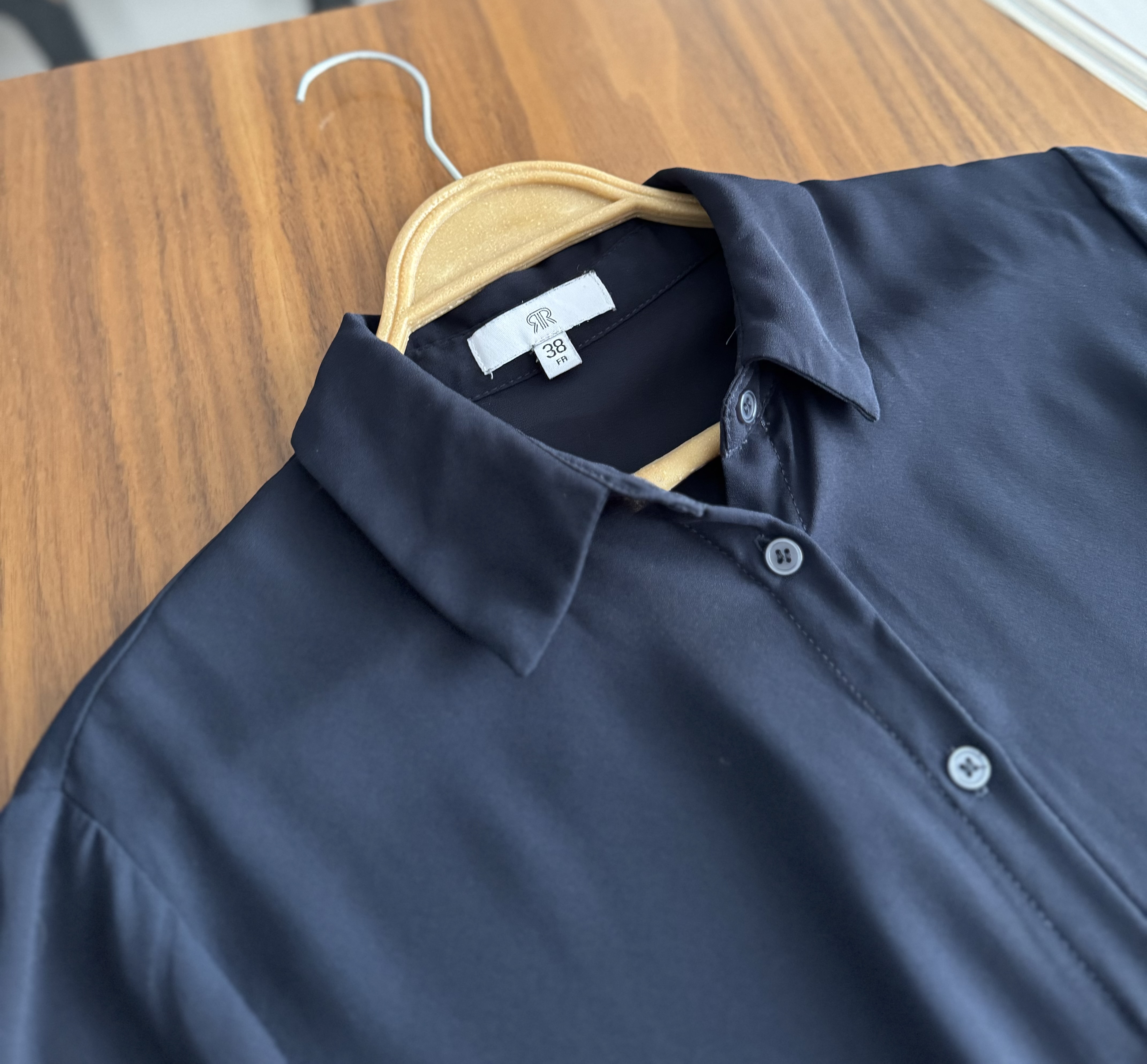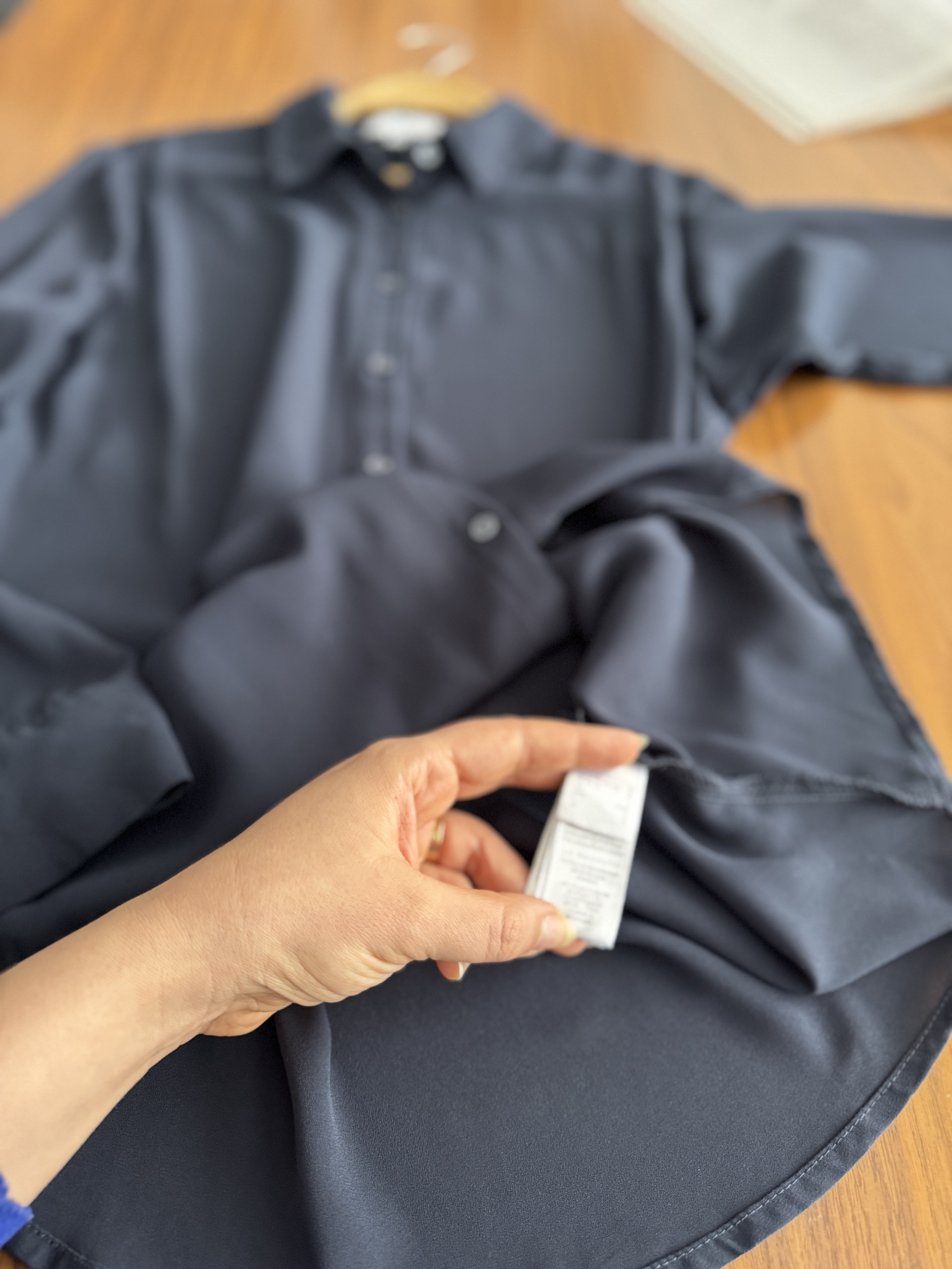 شومیز سرمه ای کرپ حریر لخت خیلی ناز و کاربردی-اصلا بدن نما نیست برند🦋La redoute🦋 سایزروی کار۳۸ مناسب تا سایز۴۲ عرض سینه۵۴ عرض بازو۱۸ قد۶۲و۶۸