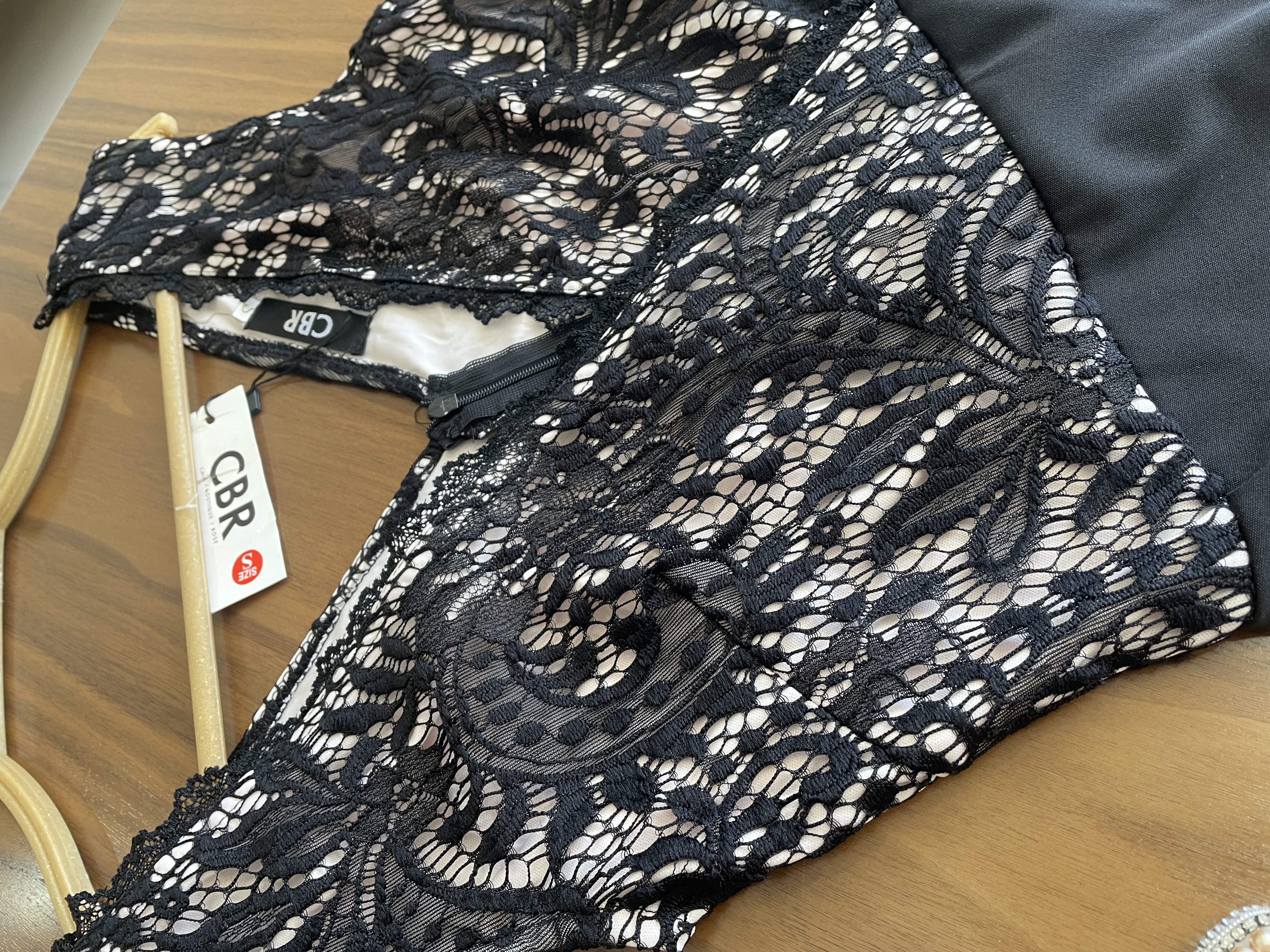 زیر قسمت دانتل آسترداره پشت کار زیپ دار تگدار مناسب سایز ۳۶/۳۸ عرض سینه از ۴۰تا۴۷ اوکی بخاطر کش امدن قد۹۰