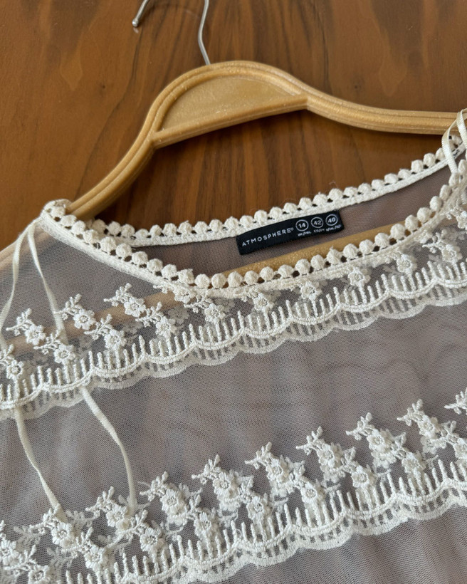 بلوز تور و دانتل گلدوزی خیلی شیک و خاص نباتی رنگ برند atmosphere