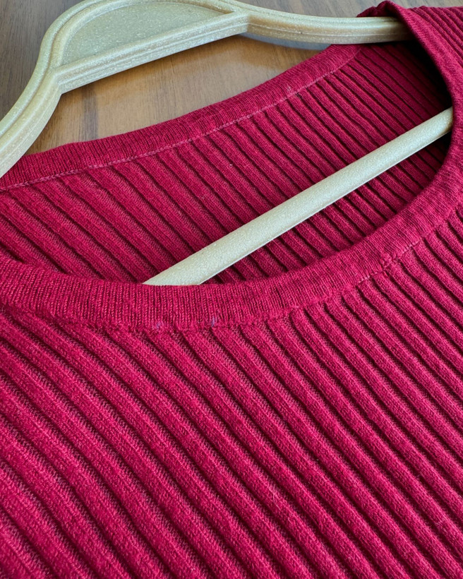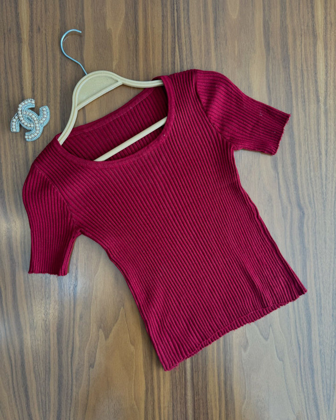 بافت استین کوتاه زرشکی گپ برند کشسانی خوبی داره