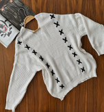 پلیور بافت سفید رنگ فوق العاده گرم و لطیف و خاص برند سایز روی کار لارج