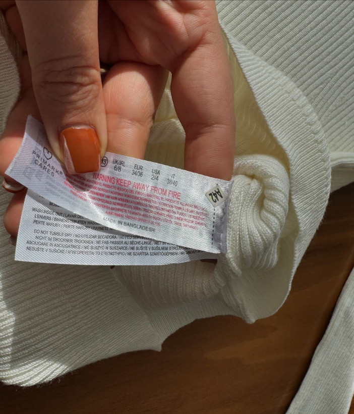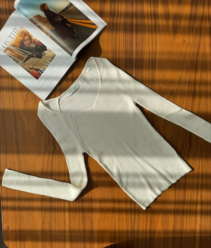 بافت شیری رنگ خیلی سفت وخوشگل وخاص براي زير كت و پالتو عاليه برند primark سايز روي كار ايكس اسمال مناسب سايز ٣٢تا٣٨ريز عرض سینه در حالت عادی۴۵کش میاد قد۶۱