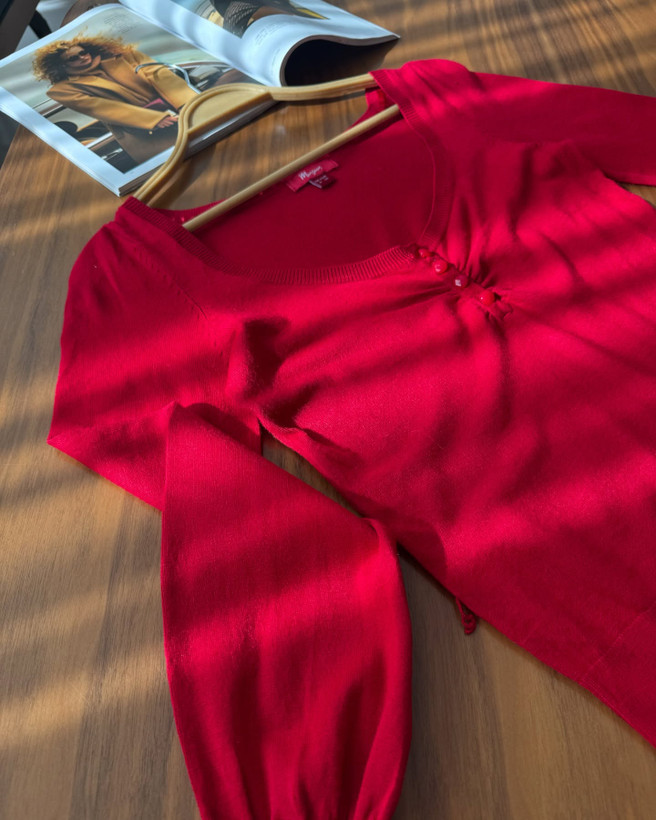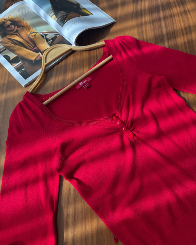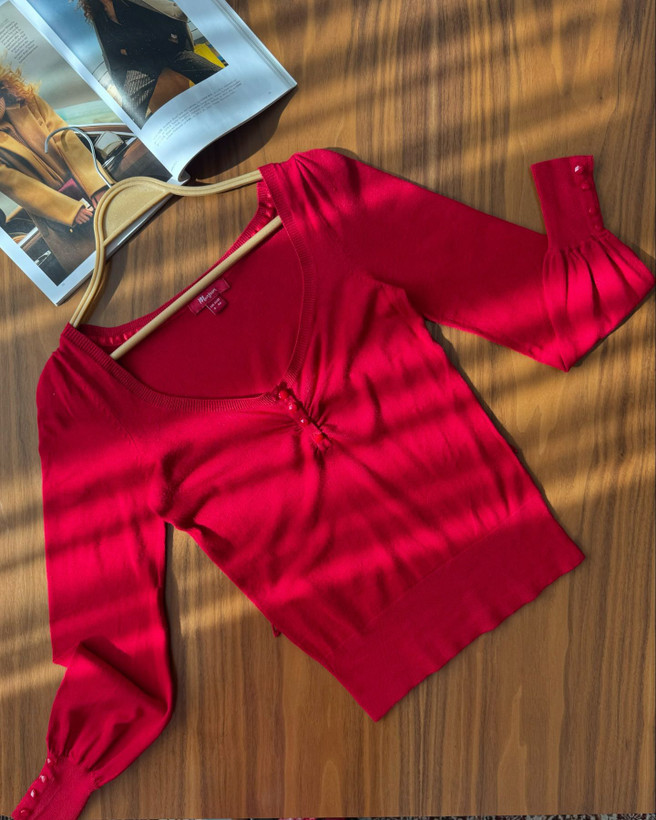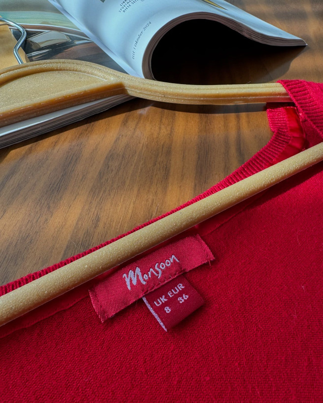 بافت قرمز رنگ خیلی لطیف و ناز مناسب شب یلدا برند امریکایی monsoon