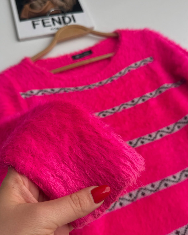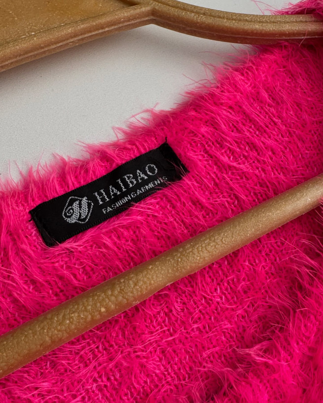 بافت خیلی خوشرنگ و لطیف موهر برند Haibao مناسب سایز ۳۶تا۴۰ عرض سینه در حالت عادی۴۵وتا۵۲هم کشسانی دارد قد۶۸
