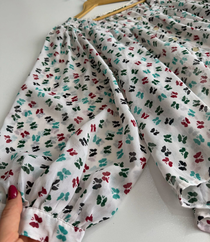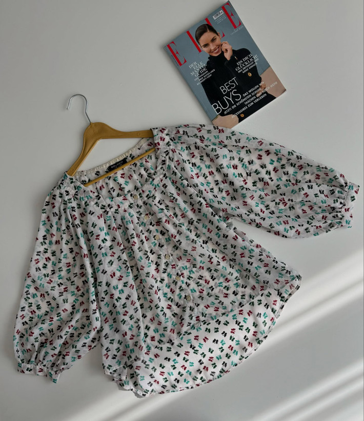 بلوز حرير خيلي خوشگل و خاص و خوش كوپ برندselect سايز روي كار ٤٢ اما تا٤٦هم اندازه عرض سينه بخاطر مدلش آزاد قدجلو٥٥پشت٧٥