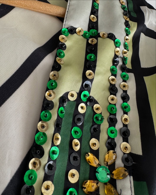 بلوز رویه ساتن ابريشم خيلي خاص و خوشگل پولک و سنگدوزی شده برند