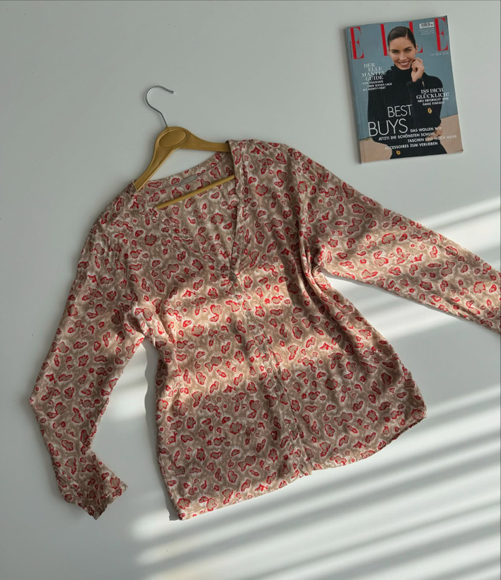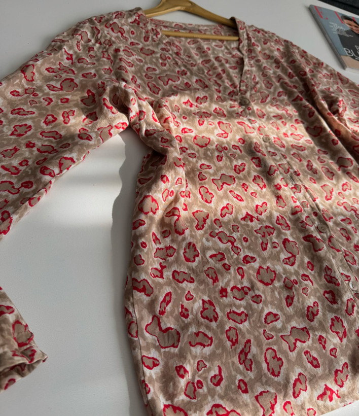 شوميز تمام نخي خيلي خوش طرح و خنك يه دكمه تو بار افتاده برندHanro مناسب سايز ٤٠تا٤٤ريز عرض سينه٥٥ عرض بازو١٨ قد٦٦