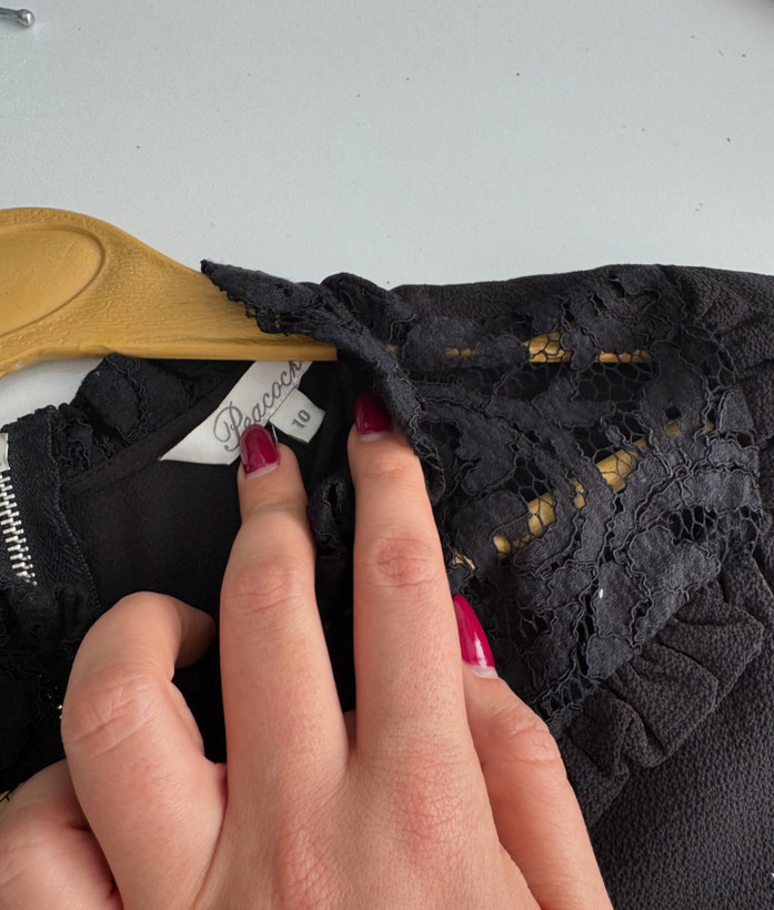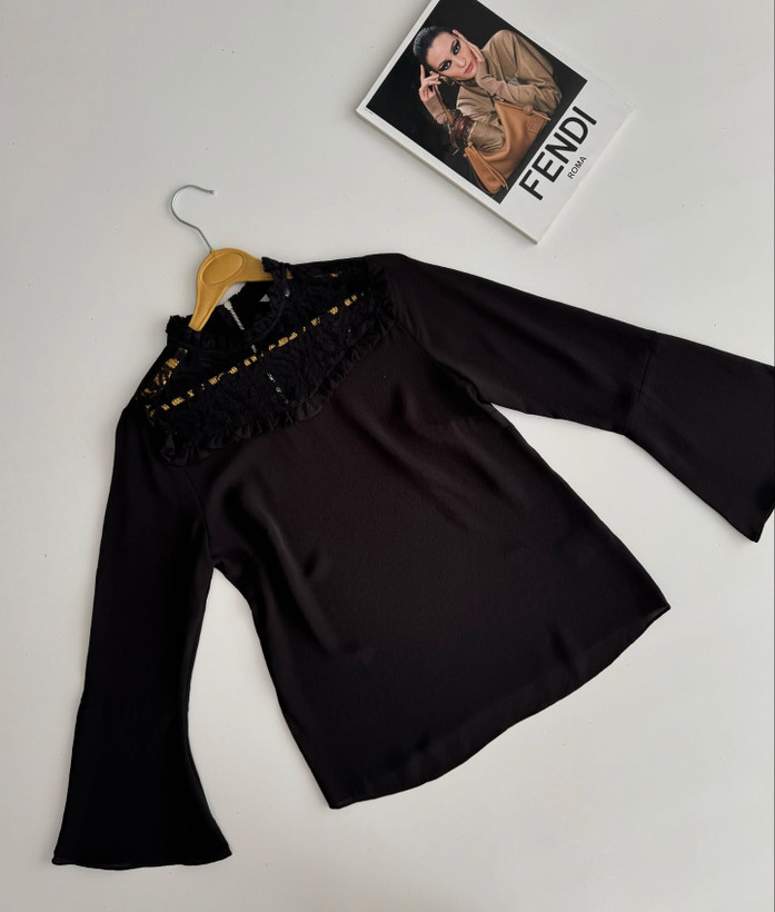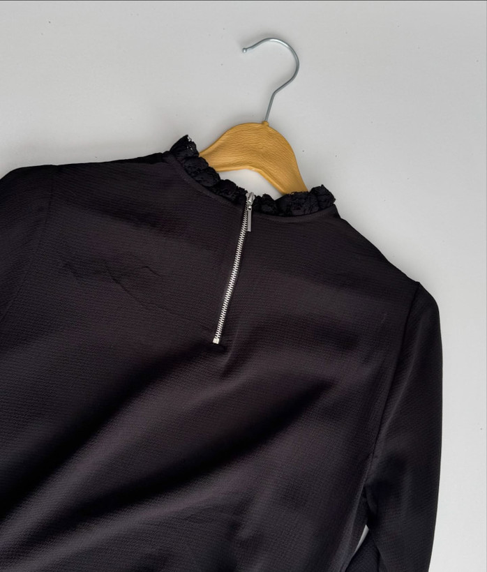 بلوز مشکی یقه تمام دانتل خیلی با کیفیت وخوش جنس(كاملا مشكي هست تو عكسا رنگش چند درجه روشنتر افتاده) برند عالیpeacocks سایز روی کار ۱۰ مناسب سایز۳۸/۴۰ عرض سینه۴۹ عرض بازو۱۷ قد۶۸