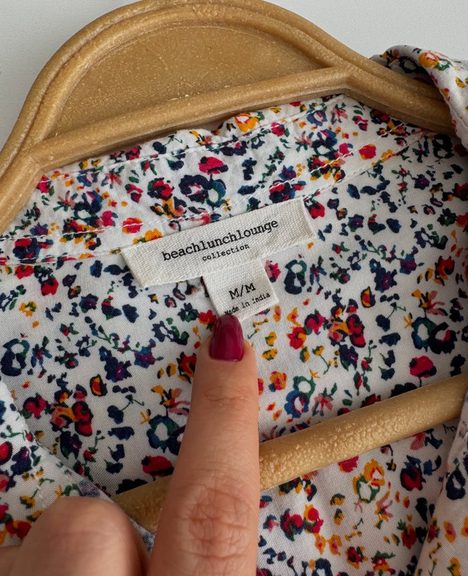 شومیز ۱۰۰٪نخی خیلی خاص وخوش طرح برندbeachlunchlounge سایز روی کار مدیوم