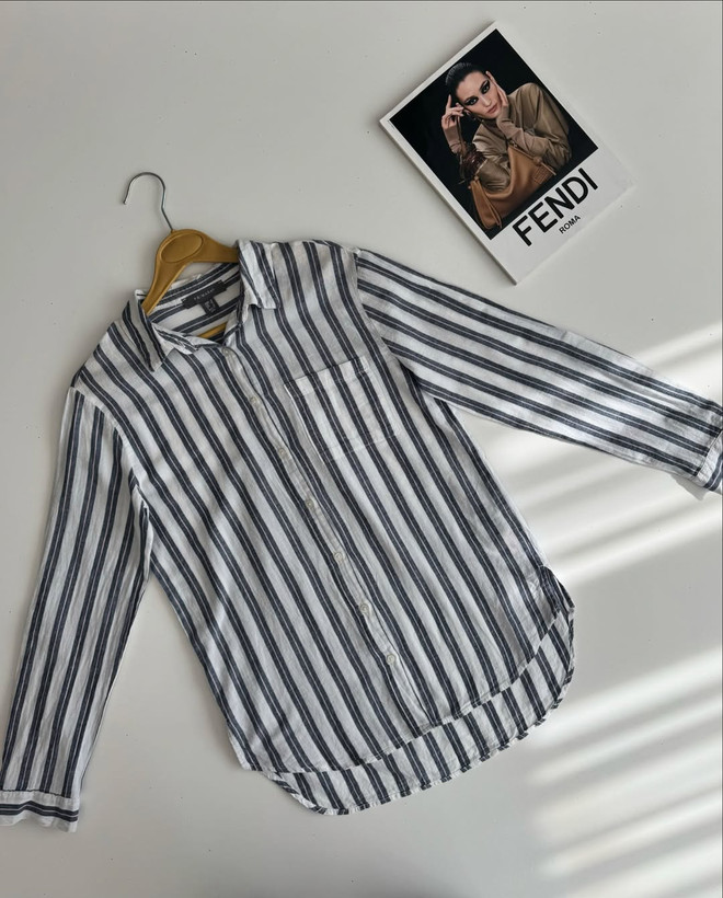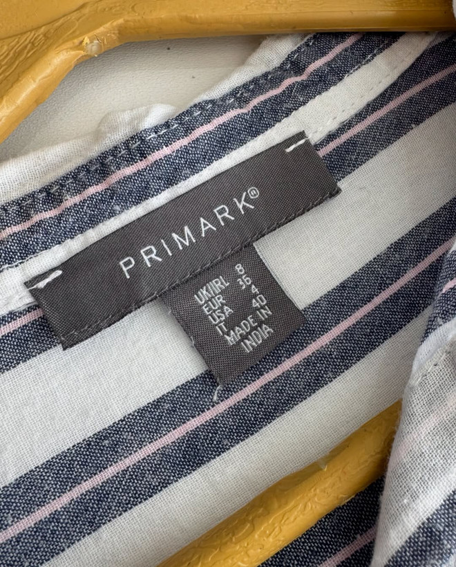 شوميز١٠٠٪نخ پنبه خيلي كاربردي و خوشگل برندprimark سايز روي كار٨ مناسب سايز٣٦تا٤٠ريز عرض سينه٤٨ عرض بازو١٦ قدجلو٦٨پشت٧٥