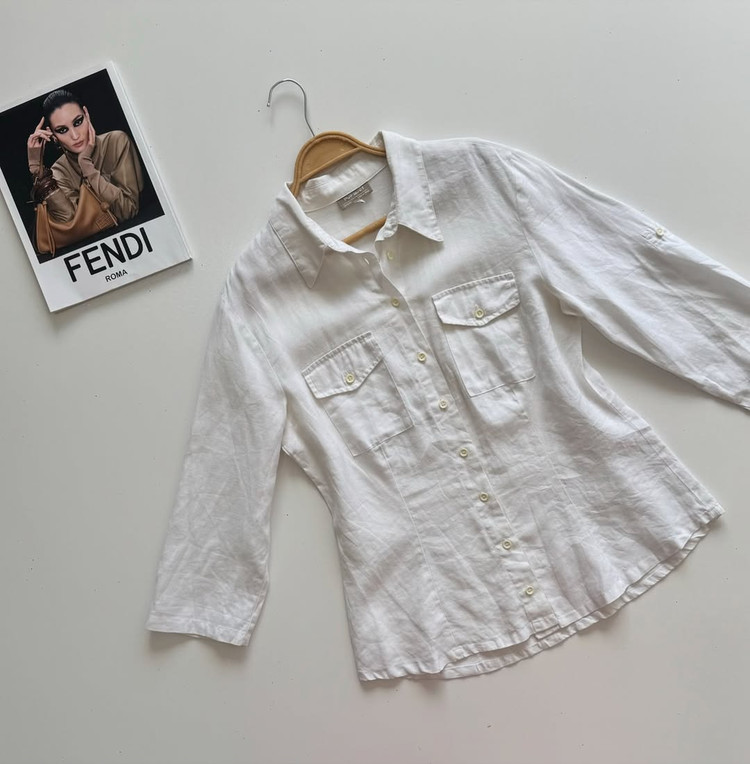 شوميز١٠٠٪لينن اسپانيايي خيلي كاربردي و خوشگل برندporque عرض سينه٥٣ عرض بازو١٩ قد٧٢