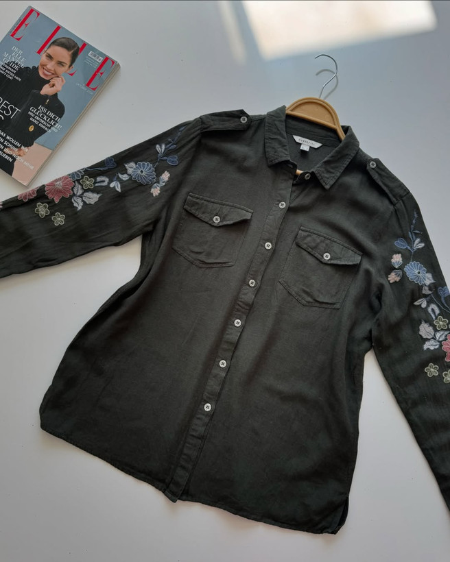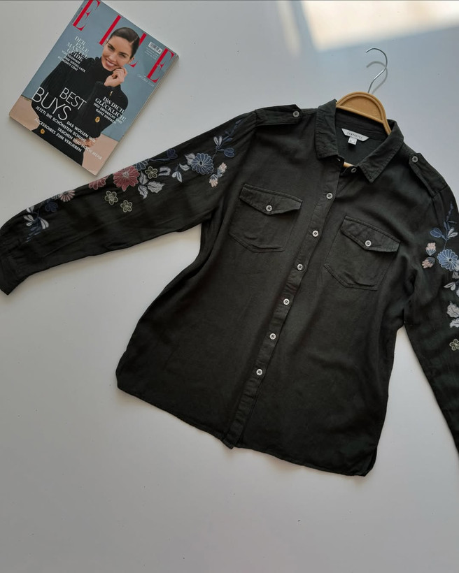 شوميز خيلي خاص و خوشرنگ تركيب لينن و نخ استينا تمام گلدوزي شده برندcortefiel سایز روی کار مدیوم اما مناسب تا سایز۴۲ عرض سينه٥٢/٥ عرض بازو١٦ قد٦٩