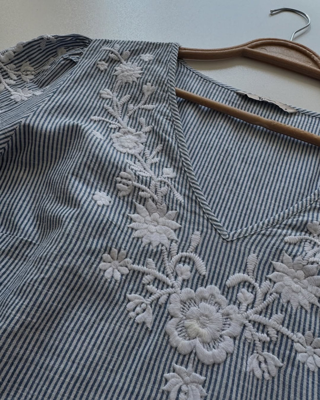 شومیز۱۰۰٪کتان تمام گلدوزی شده خیلییی خوشگل و خاص برندtu سایز رویکار۱۲ مناسب تا سایز۴۲ عرض سینه۵۲ عرض بازو۱۷ قد۶۲