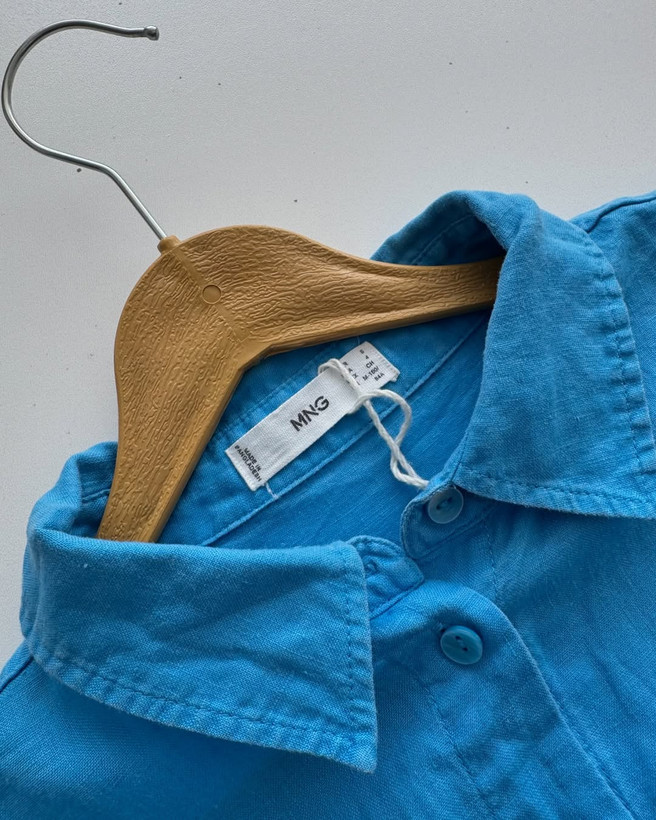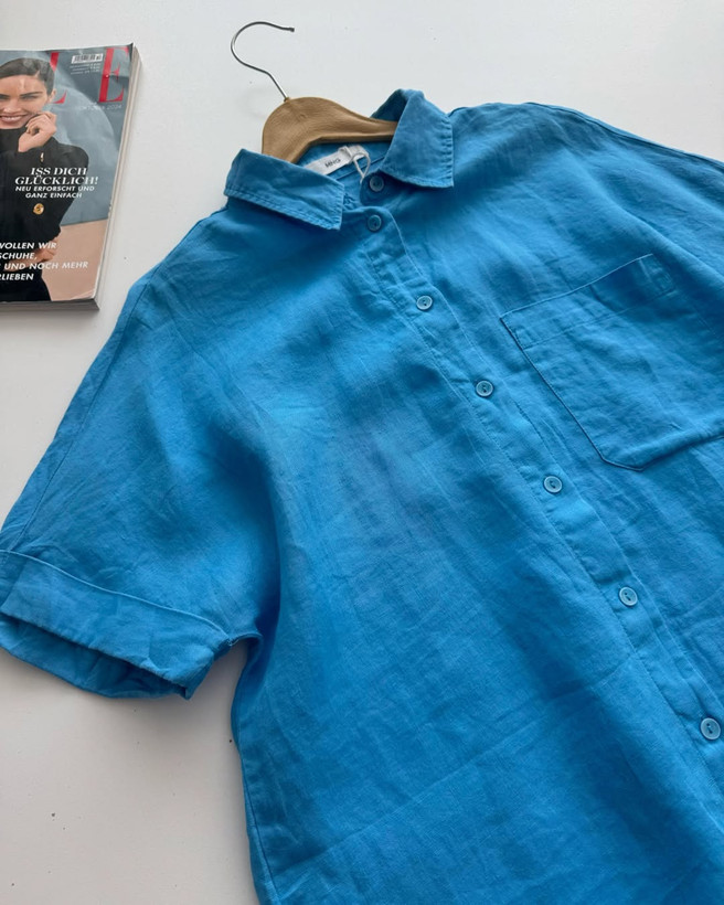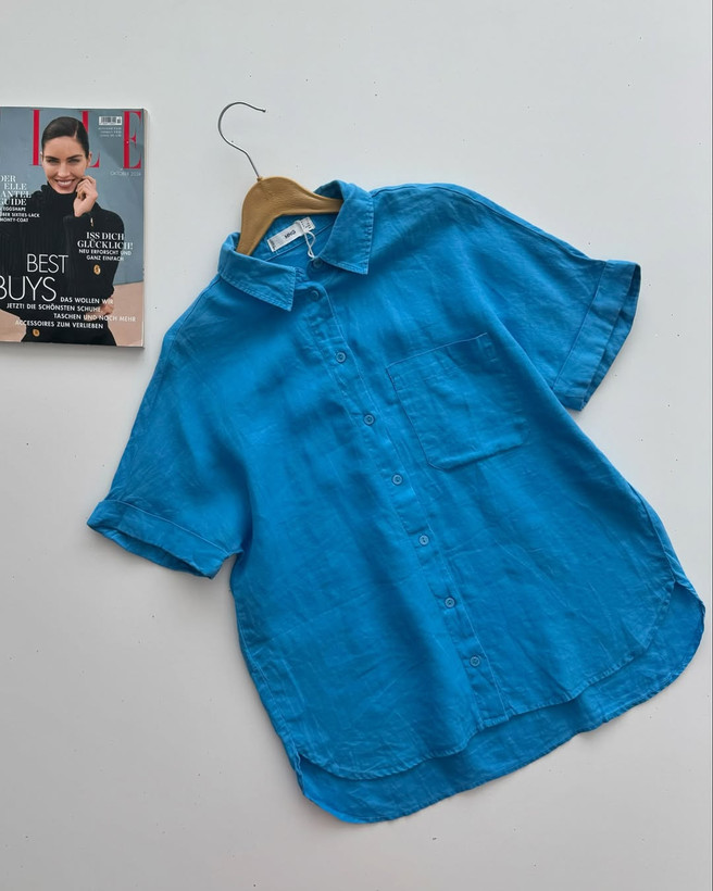 شوميز١٠٠٪لينن گرم بالا خيلي با كيفيت و فوق العاده خوشرنگ برندmango سايز روي كار اسمال اما تا ٤٢مناسب عرض سينه٥٥ قدجلو٧٢پشت٧٥ عرض بازو١٩