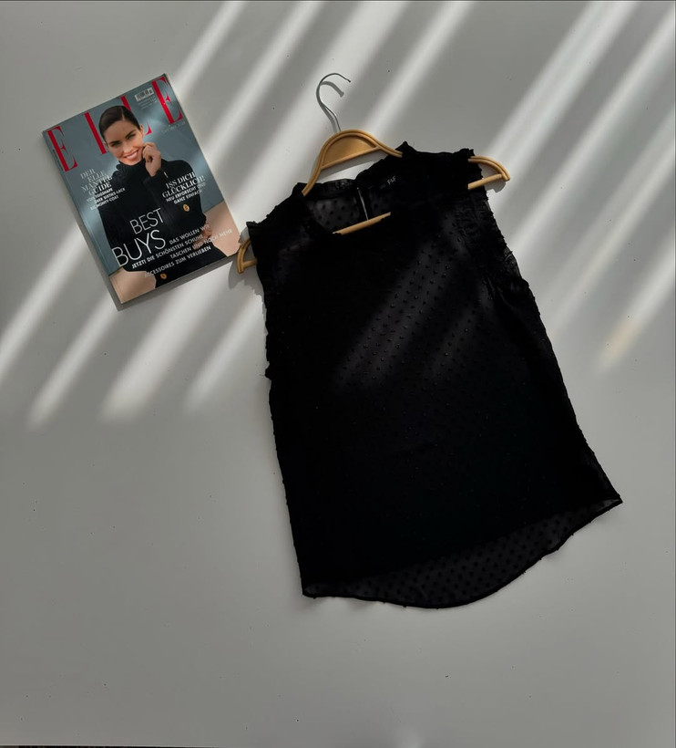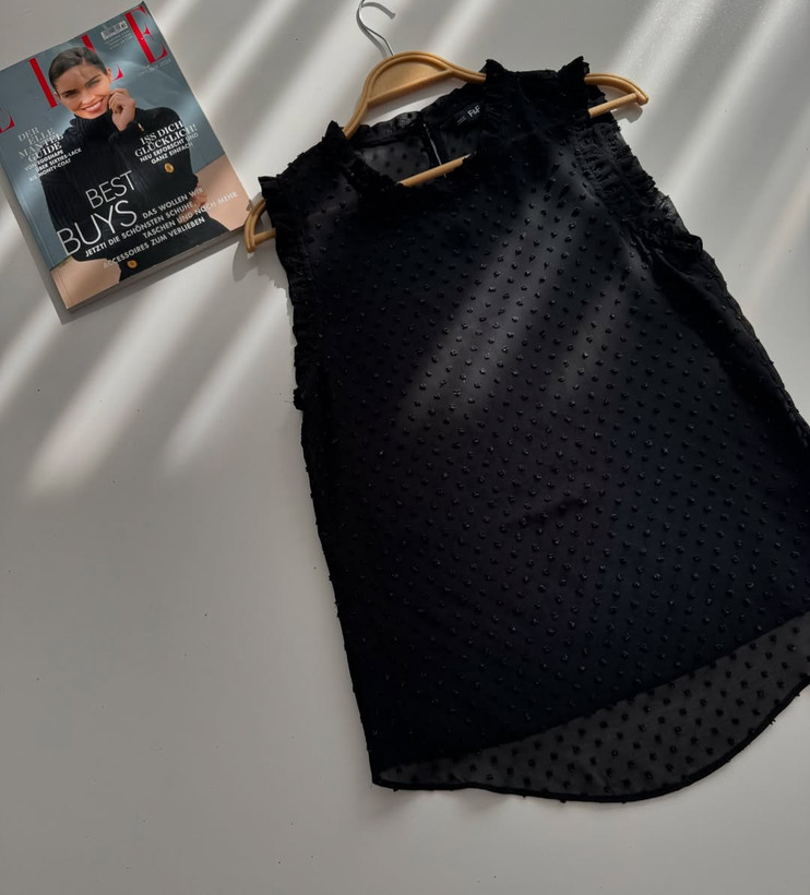 تاپ حریر مشکی خیلی خوشگل و کاربردی سایه میندازه برندf&f سایز روی کار۶ مناسب سایز۳۴۳۶ عرض سینه۴۵ قد۶۴