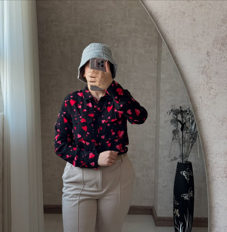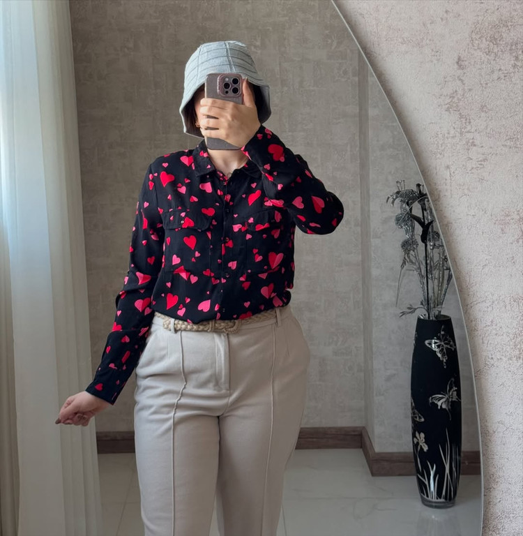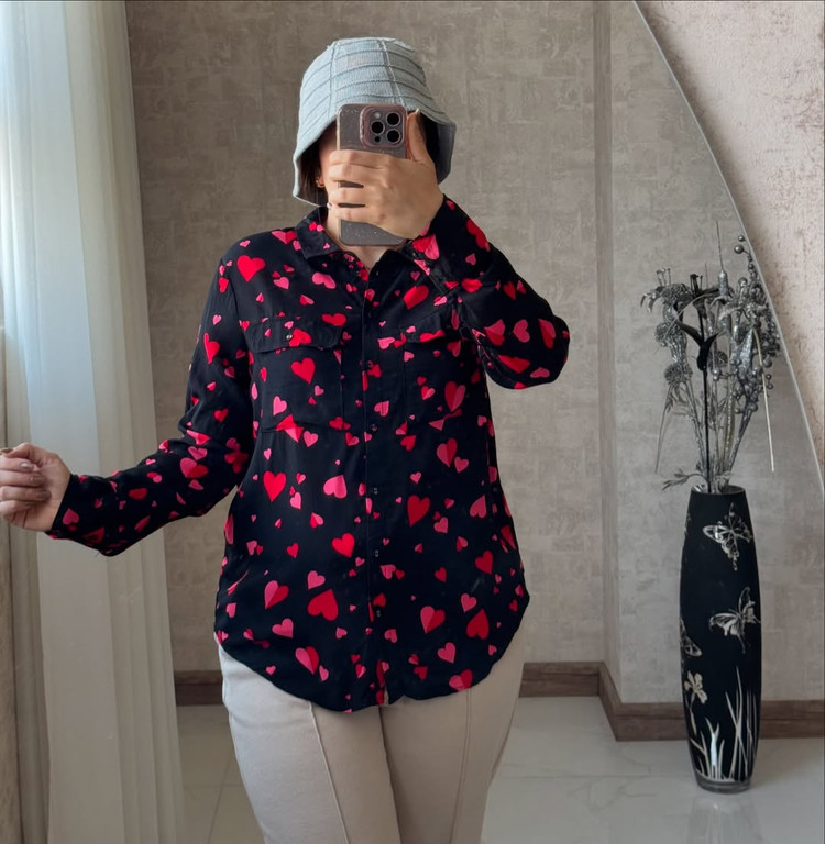 شوميز١٠٠٪نخي لخت و پارچه گرم بالادكمه زاپاس دارد خيلي خوشگل و با كيفيت برندlove roses مناسب سايز ٤٢٤٤ عرض سينه٥٥ قدجلو٧١ پشت٧٤ عرض بازو١٧