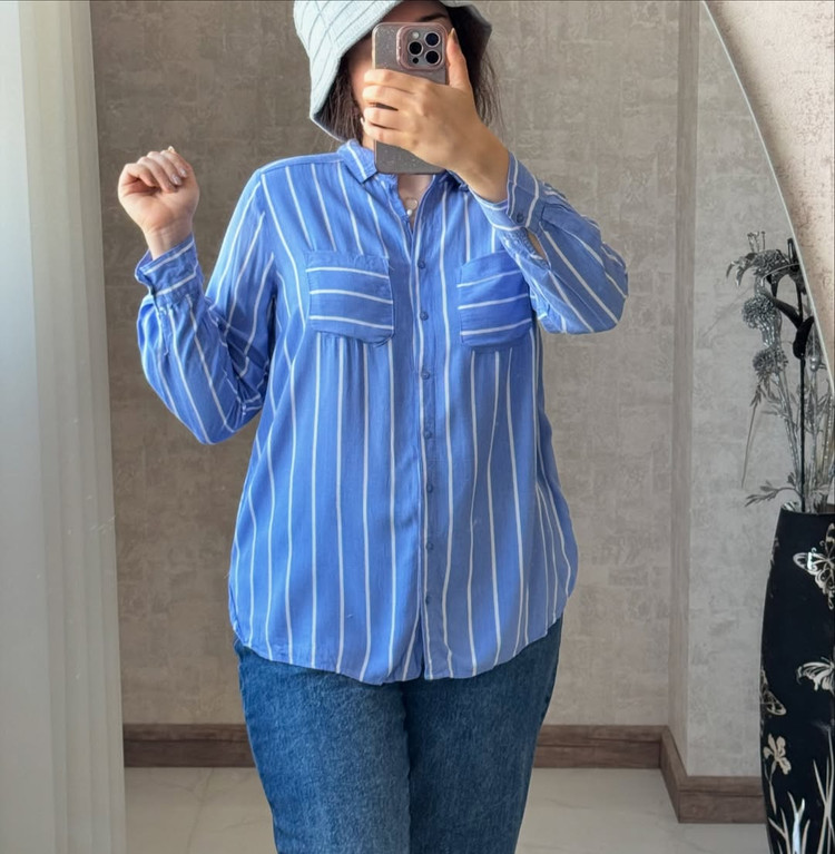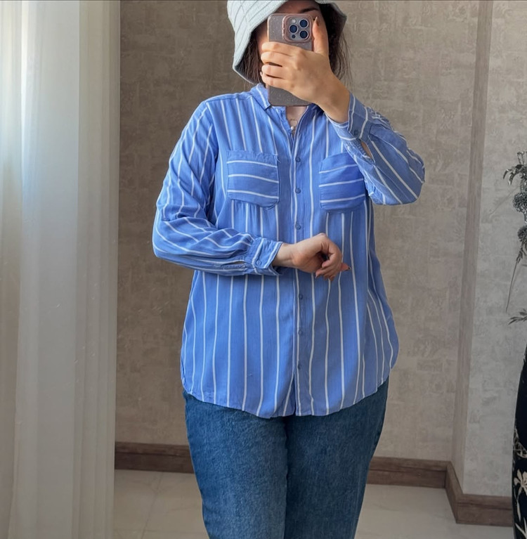 شومیز١٠٠٪نخی آبی راه راه برند max