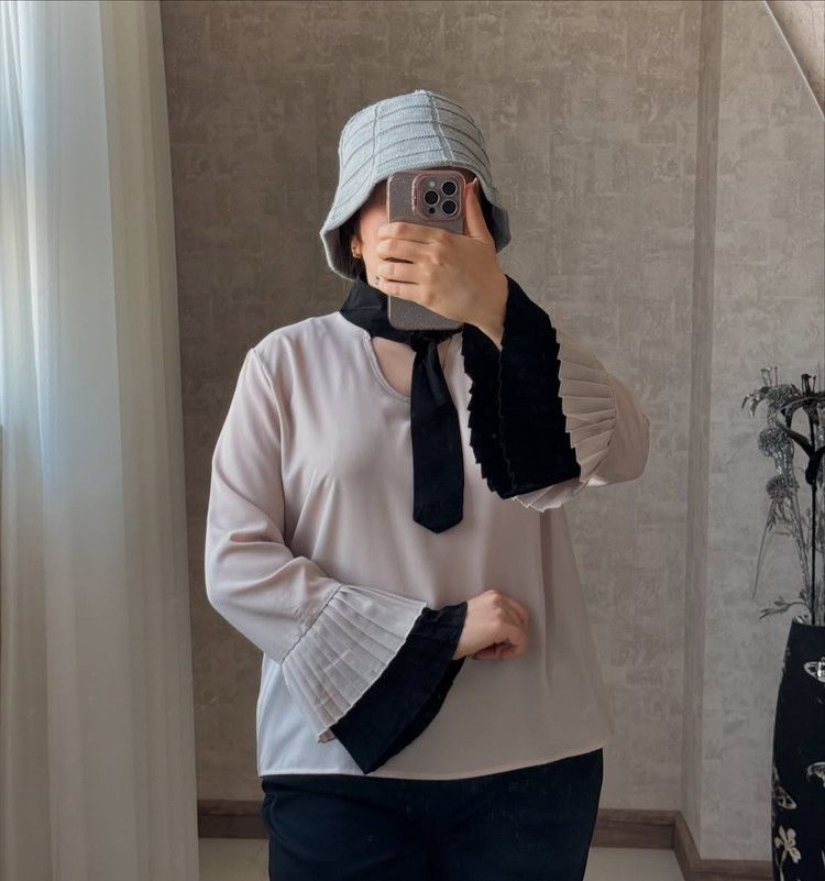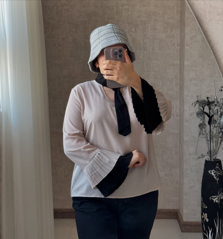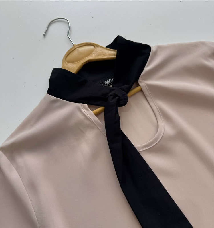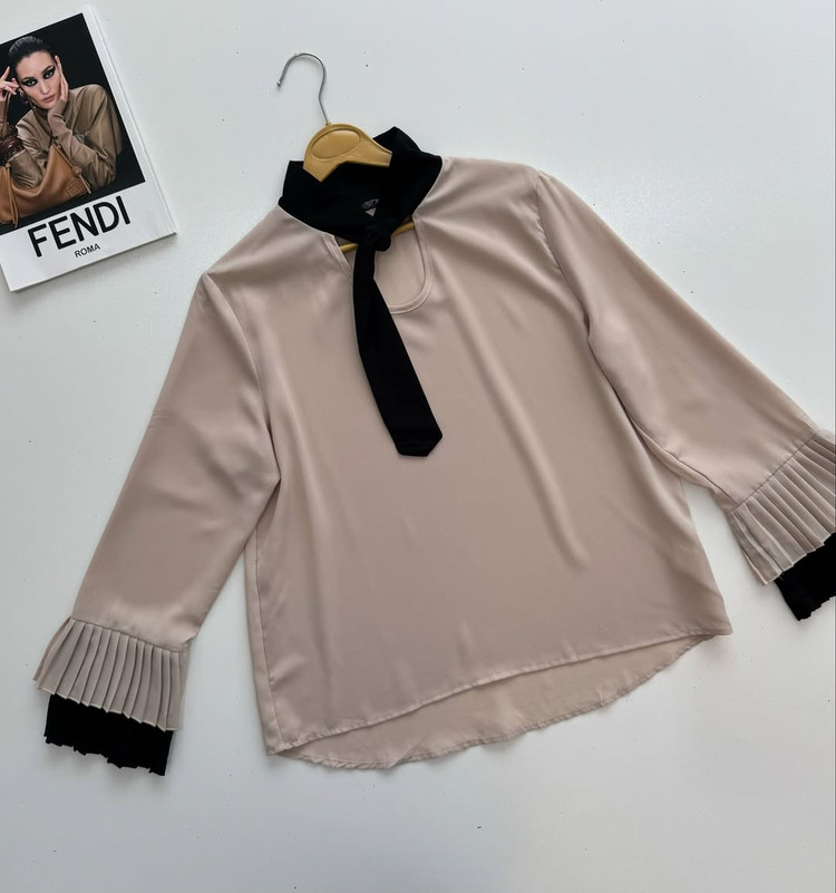 يه كار يونيك و خوشگل شوميز مجلسي يقه كراواتي جنس كرپ ابريشم لخت مجلسي برندRf fashion مناسب سايز ٤٢٤٤ عرض سينه٥٥ قدجلو٦٤پشت٧٠ عرض بازو١٨