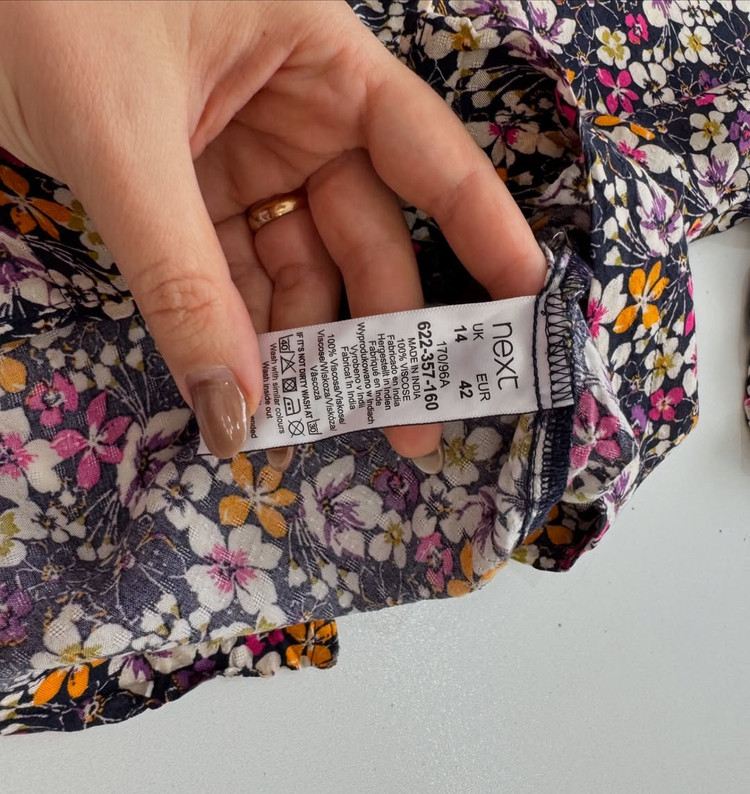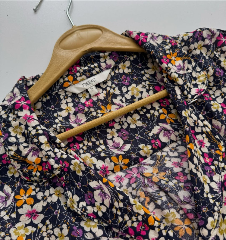 شوميز ١٠٠٪نخي و لطيف خيلي خوش جنس و خوش طرح و پارچه خاص برند انگليسيnext سايز روي كار١٤ مناسب سايز٤٢٤٤ عرض سينه٥٨ قد٦٨ عرض بازو١٩