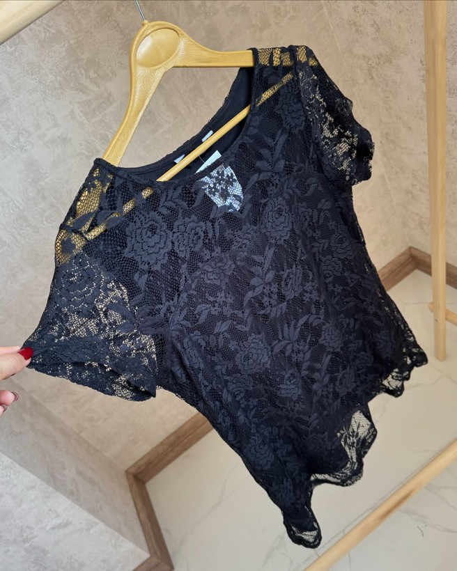 بلوز مشكي تمام دانتل آستردار خيلي ناز و خوشگل و كاربردي برندdorothy perkins مناسب سايز ٤٠٤٢ عرض سينه در حالت عادي٤٧وتا٥٤كشساني دارد قد٦٦