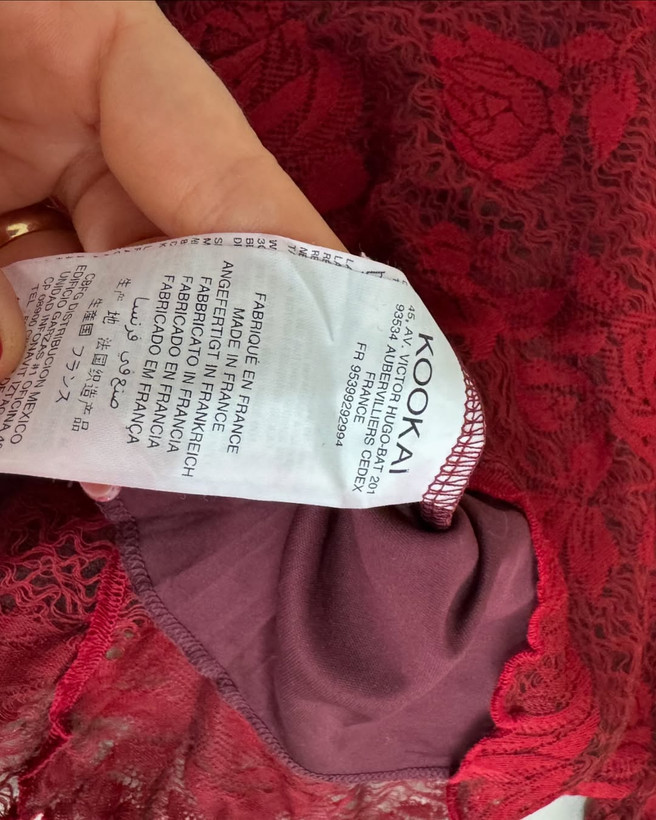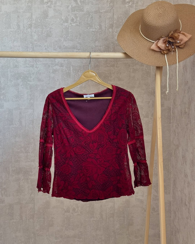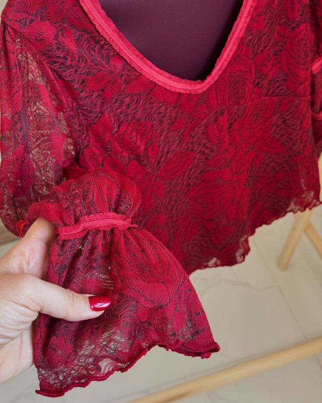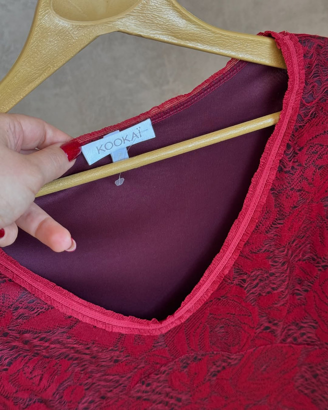 بلوز دانتل خوشرنگ و ناز آستردار فرانسوي برند فرانسويkookai مناسب سايز٣٦تا٤٠ عرض سينه در حالت عادي٤٢وتا٤٨كشساني دارد قد٥٤