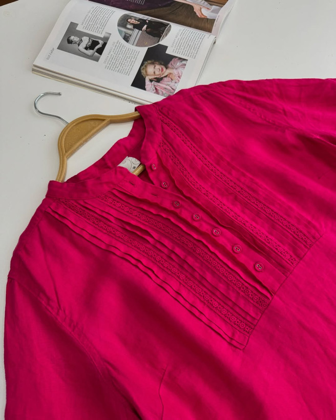 شومیز سرخابی ۱۰۰٪لینن خیلیییی خوشرنگ و جذاب برند مناسب سایز ۴۴۴۶ عرض سینه۵۷ عرض بازو۱۸ قد۷۱ قیمت۶۸۵
