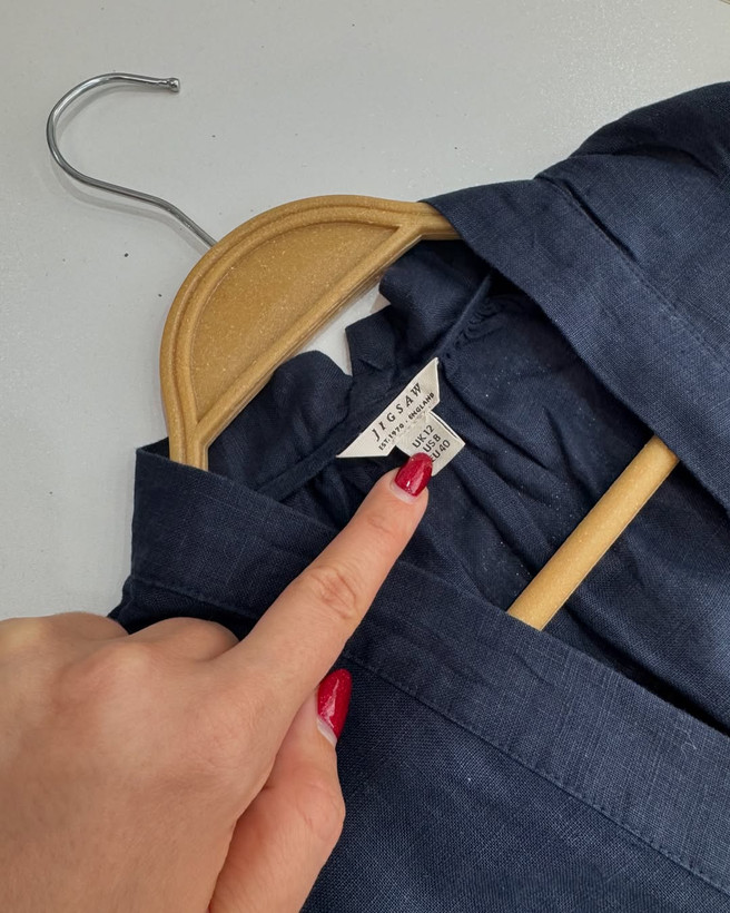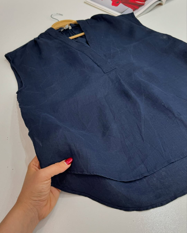 تاپ۱۰۰٪لینن سرمه ای بینظیر خیلی شیک و جذابه برند انگلیسی JIGsaw مناسب سایز۴۰۴۲ عرض سینه۵۳ قدجلو۶۷پشت۷۱ قیمت۵۹۵