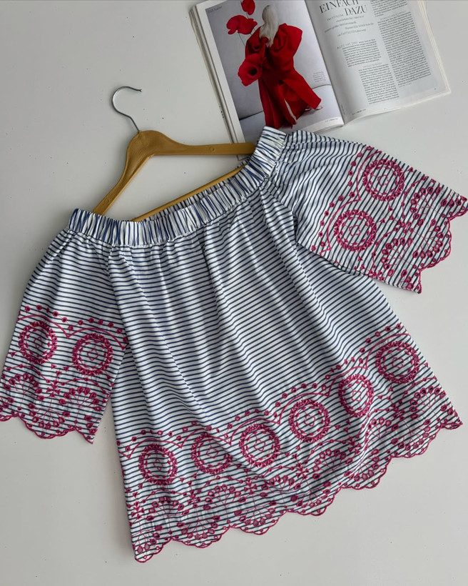 بلوز تركيب كتان و خامه دوزي خيلي ناز وارداتي برندtu