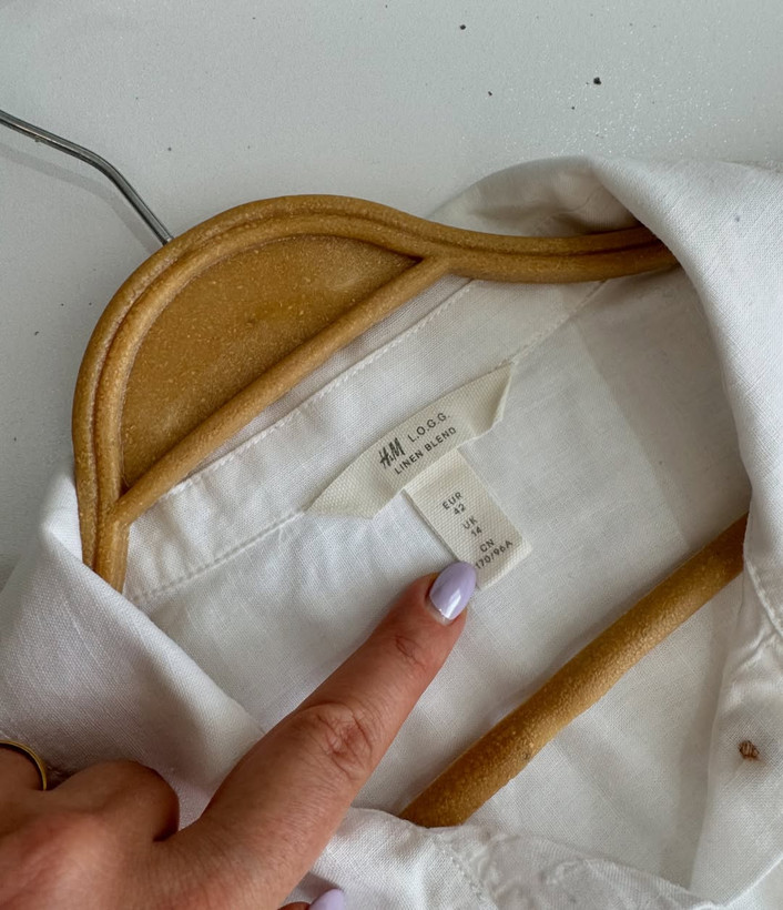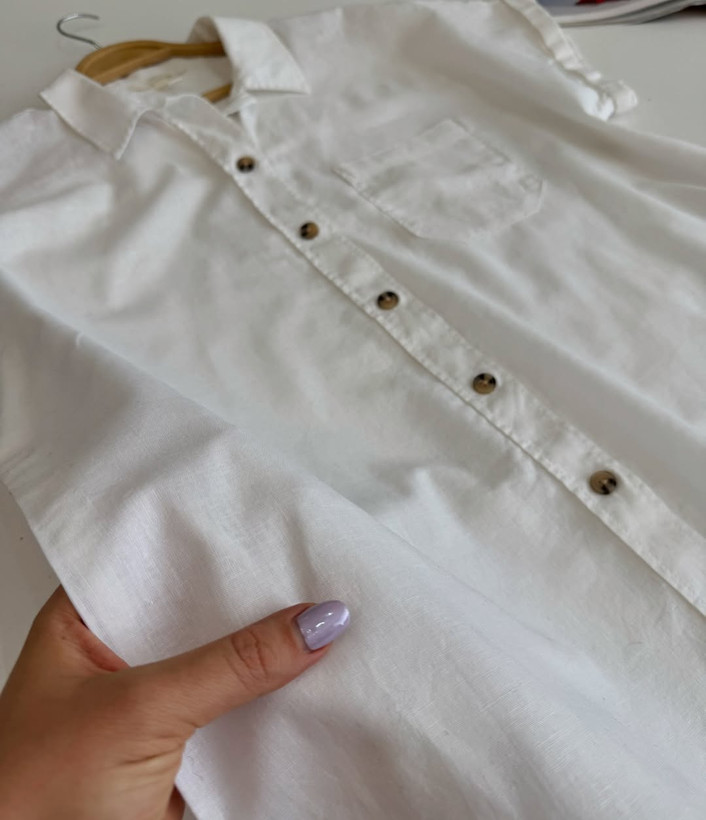 شومیز ترکیب کتان و لینن خیلی شیک و جذاب برندh&m سایز روی کار۴۲اما تا ۴۸اندازه عرض سینه۶۲ قد۷۲ قیمت۶۸۵