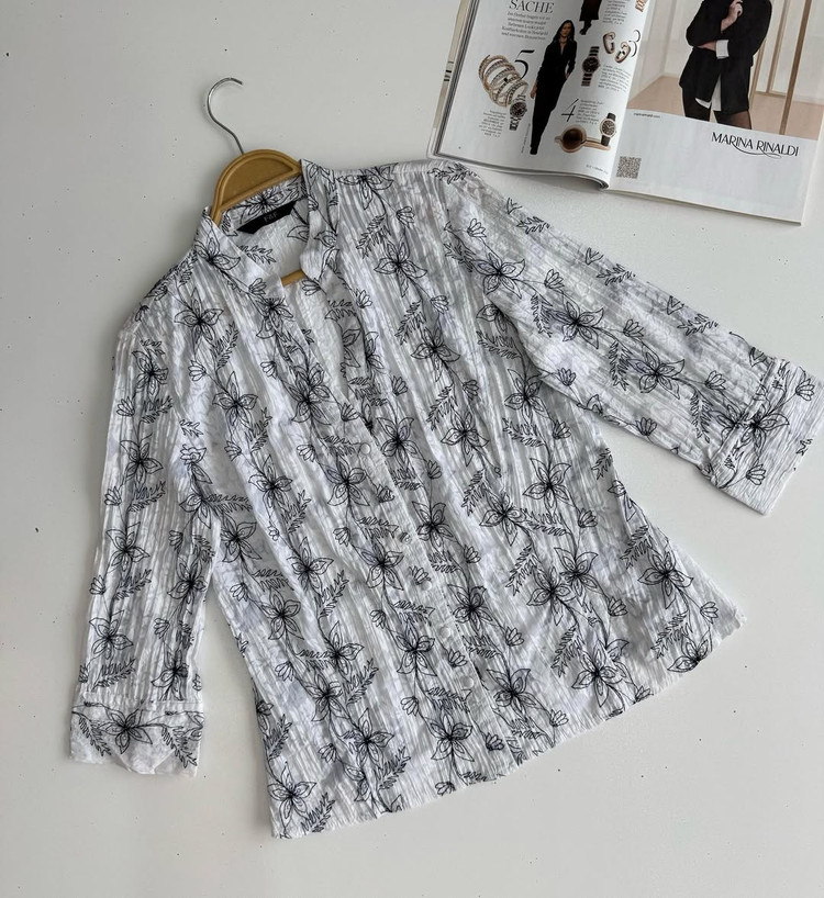 شومیز کتان سفید گلدوزی شده برند f&f وارداتی