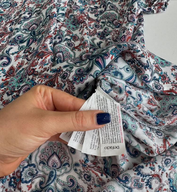 بلوز١٠٠٪نخي خيلي خوش طرح و خوشگل برند تركdefacto سايز روي كار لارج مناسب سايز٤٢٤٤ عرض سينه٥٧ قد٧٨ قيمت٥٦٥