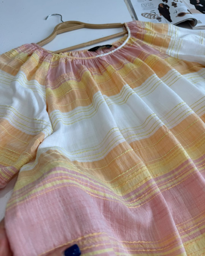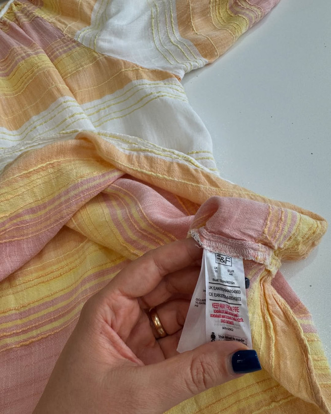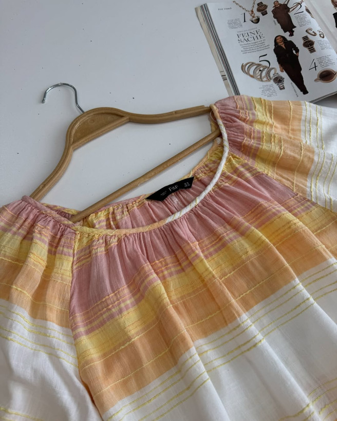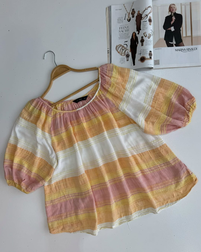 بلوز نخی خیلییی اطیف وخوش جنس و خوشرنگ برندf&f سایز روی کار۴۴ اما مناسب تا سایز۴۸ عرض سینه تا۶۷اوکی عرض بازو ازاد قد۶۵ قیمت۵۶۰