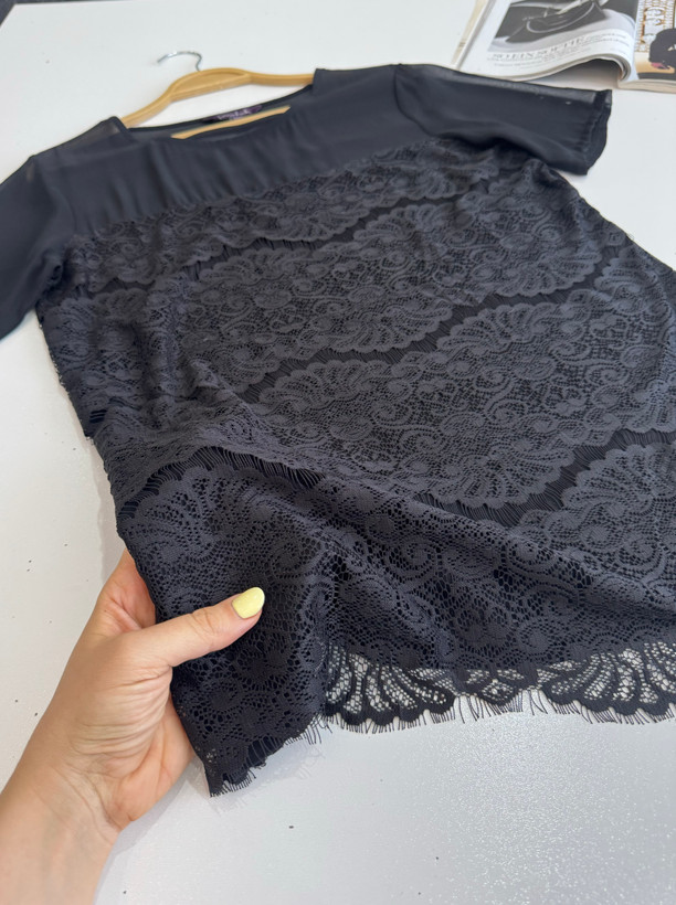 بلوز بينظير و زيباي مشكي تركيب تور ودانتل و نخ