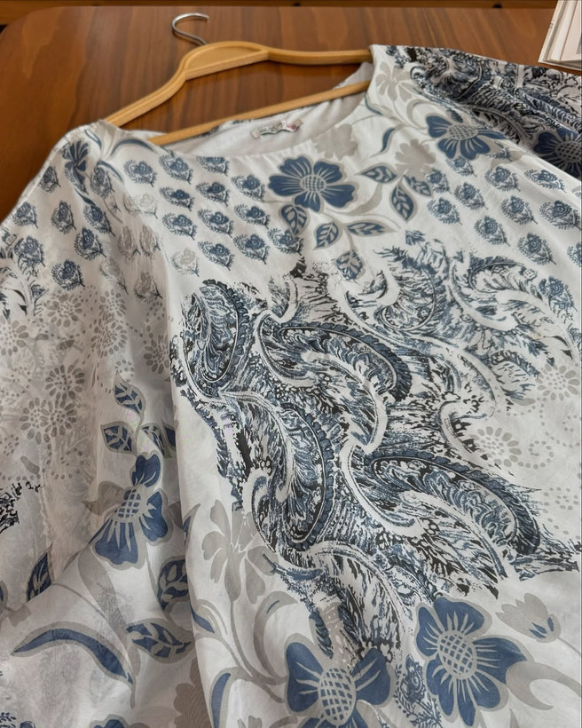 بلوز ابریشم نخ ایتالیایی آستردار بینظیر برند فری سایز عرض سینه در حالت عادی ۵۰ولی استر کشی هست و کشسانی داردتا۷۰ قدکوتاهترین قسمت۷۰وبلندترین۹۰ قیمت۷۲۵