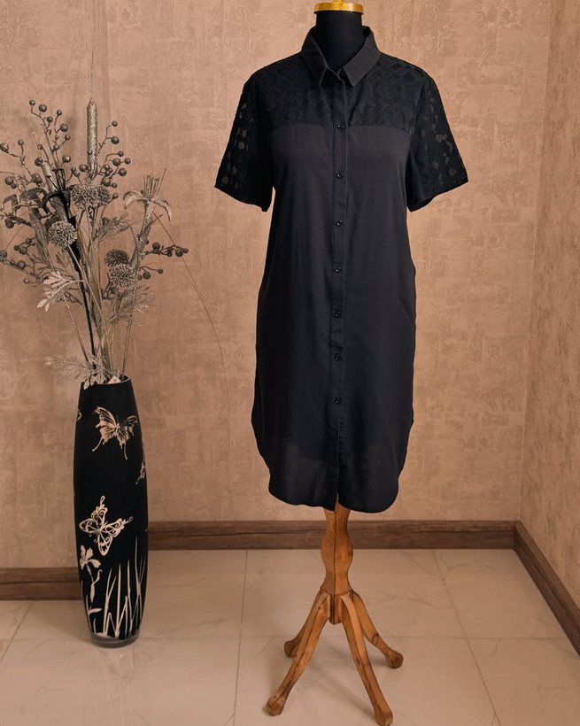 پیراهن نخی مشکی خاص وخیلی کاربردی برندvero moda سایز روی کارxl مناسب سایز۴۴۴۶ عرض سینه۵۸ قد۹۹ قیمت۶۵۰