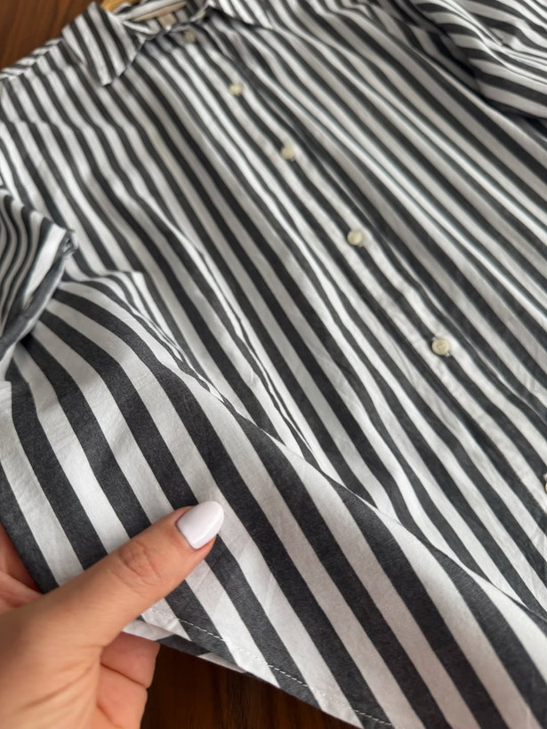 شومیز ۱۰۰٪کتان کاغذی خیلی خوش جنس وخنک برند اسپانیاییh&m سایز رویکار اسمال اما تا۴۸اندازه عرض سینه۶۲ عرض بازو ازاد قد۷۷ قیمت۷۵۰