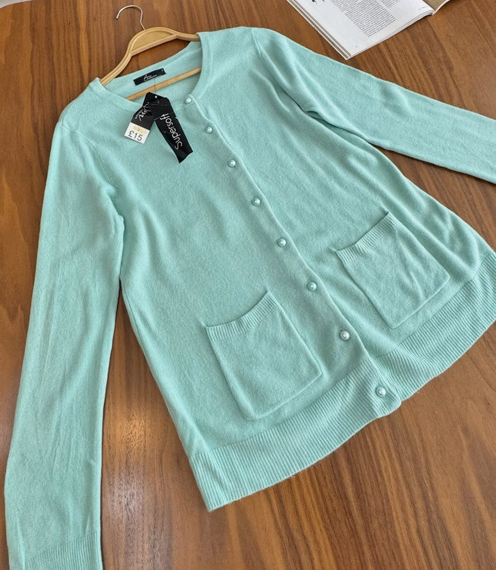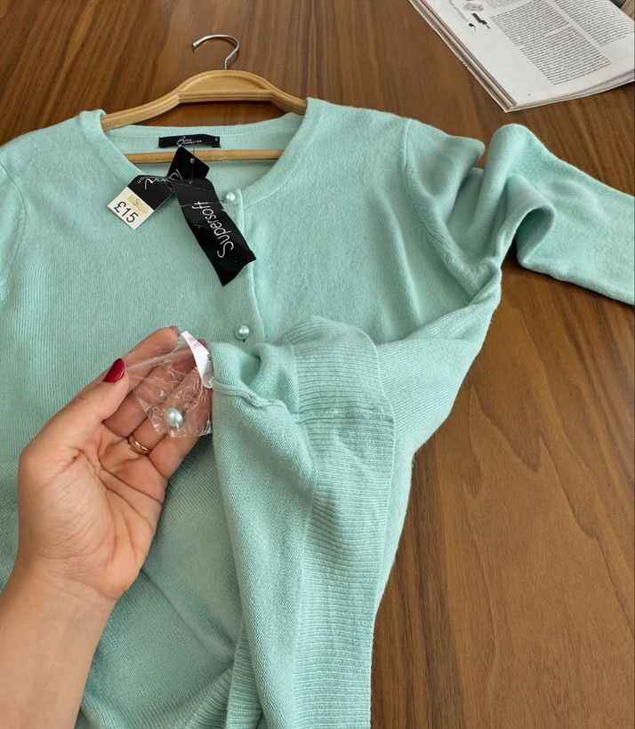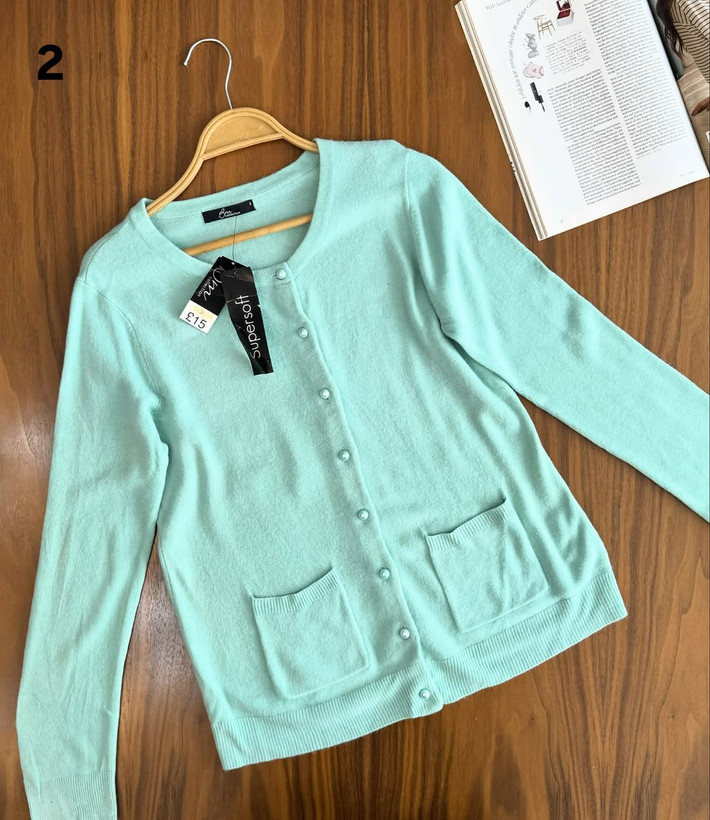 نرم تر و لطیف تر از این کت نداریم با دکمه های مرواریدی خوشگلش بافت بینظیر و خیلی خوشرنگ و فوق العاده با کیفیت تگدار برندbm سایز رویکار اسمال اما مناسب سایز۳۸تا۴۲ عرض سینه۵۱ عرض بازو۱۷ قد۶۷ قیمت۹۵۰