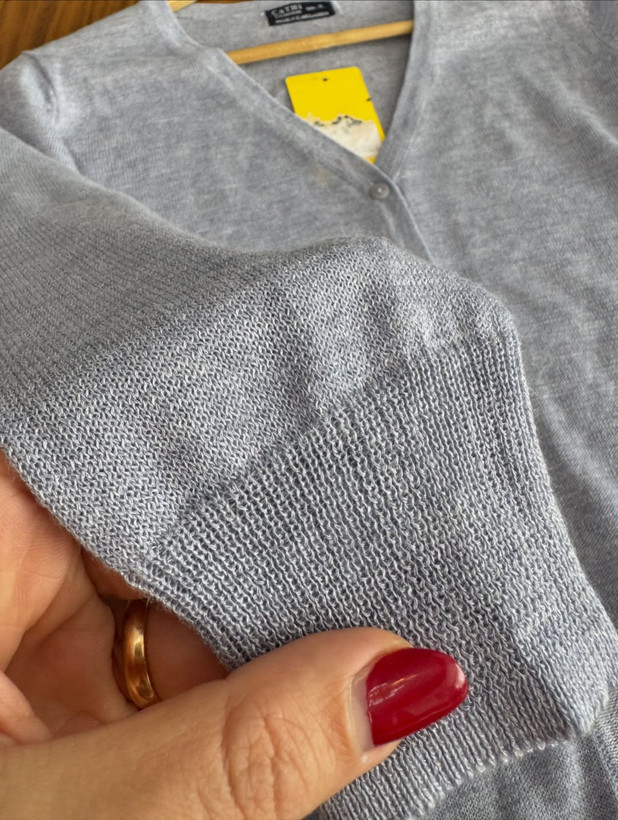 ژاکت بافت ظریف و لطیف وخیلی خوشرنگ وناز تگدار پاییزه مناسب سایز ۳۸ و دارای عرض سینه ۴۴۴۵ و عرض بازو ۱۶ و قد ۶۰.
