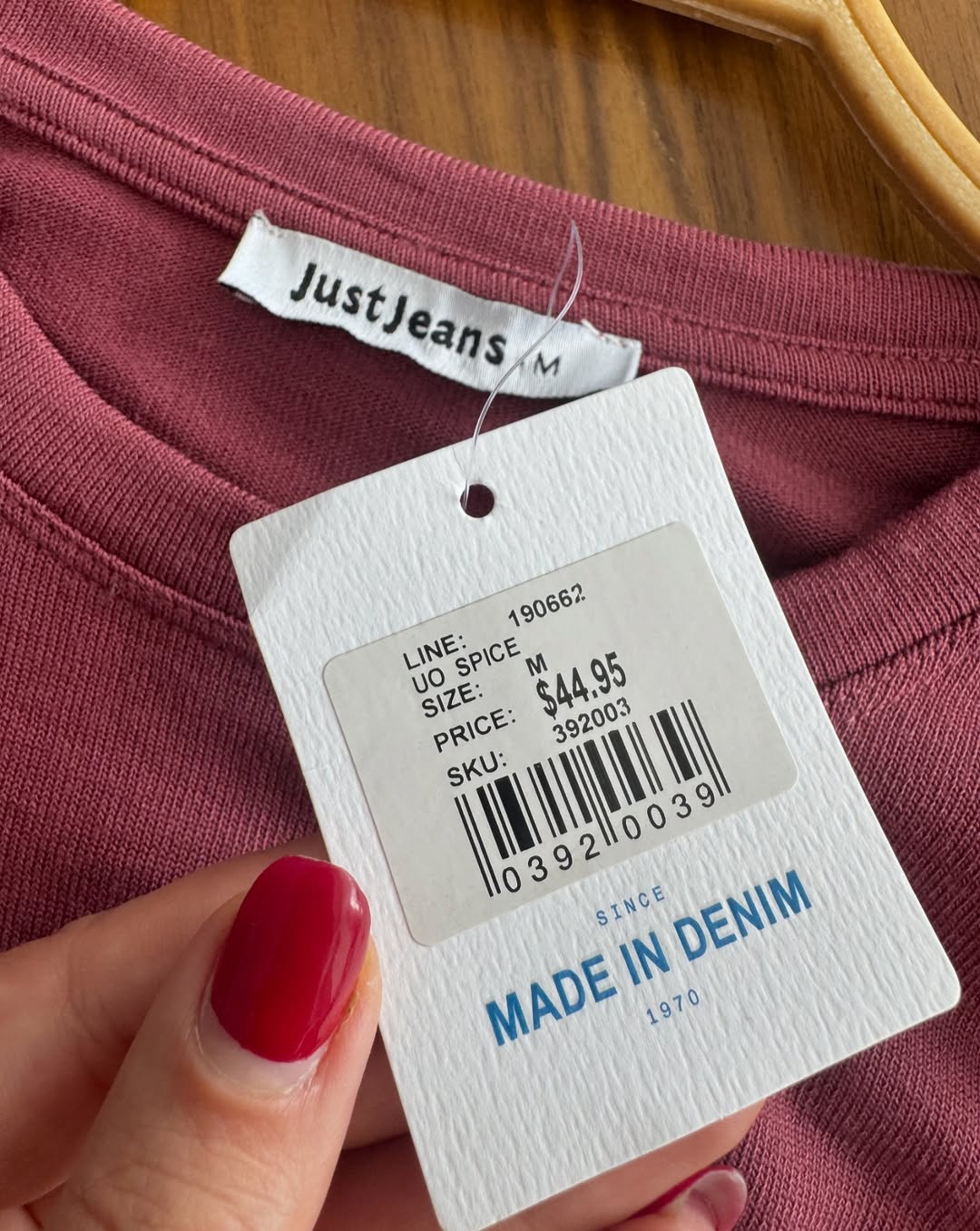 بلوز بافت لطيف و خيلي خوشرنگ و خاص و ناز تگدار برند Just Jeans. مناسب برای سایز ۴۲ تا ۴۶ عرض سینه در حالت عادی ۵۵ تا ۷۰ کشسانی دارد و عرض بازو ۱۸ تا ۲۲ کشسانی دارد و قد ۶۷.